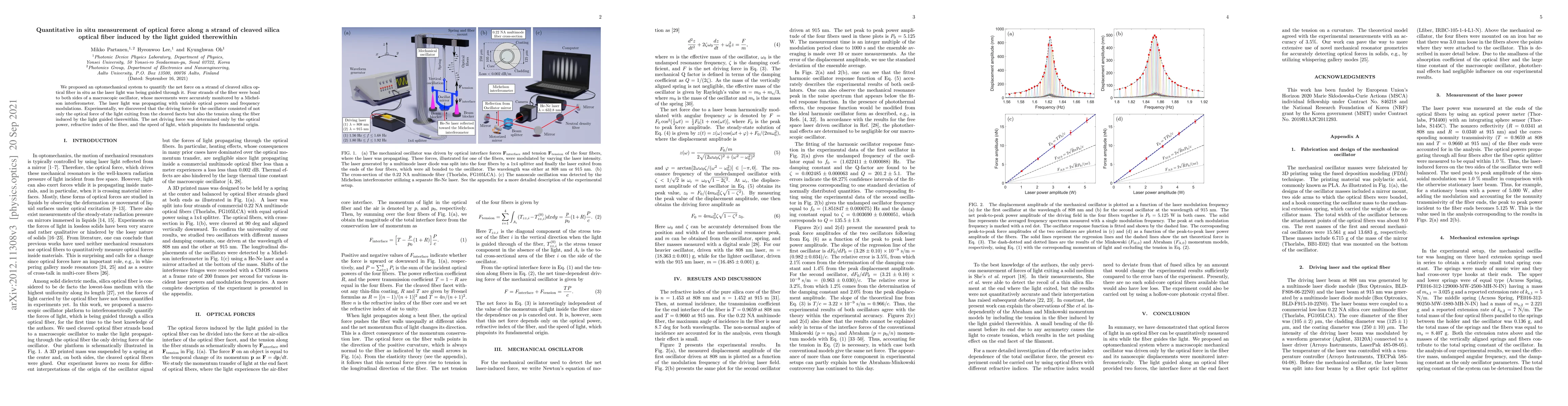 We proposed an optomechanical system to quantify the net force on a strand of cleaved silica optical fiber in situ as the laser light was being guided through it. Four strands of the fiber were bond to both sides of a macroscopic oscillator, whose movements were accurately monitored by a Michelson interferometer. The laser light was propagating with variable optical powers and frequency modulations. Experimentally, we discovered that the driving force for the oscillator consisted of not only the optical force of the light exiting from the cleaved facets but also the tension along the fiber induced by the light guided therewithin. The net driving force was determined only by the optical power, refractive index of the fiber, and the speed of light, which pinpoints its fundamental origin.