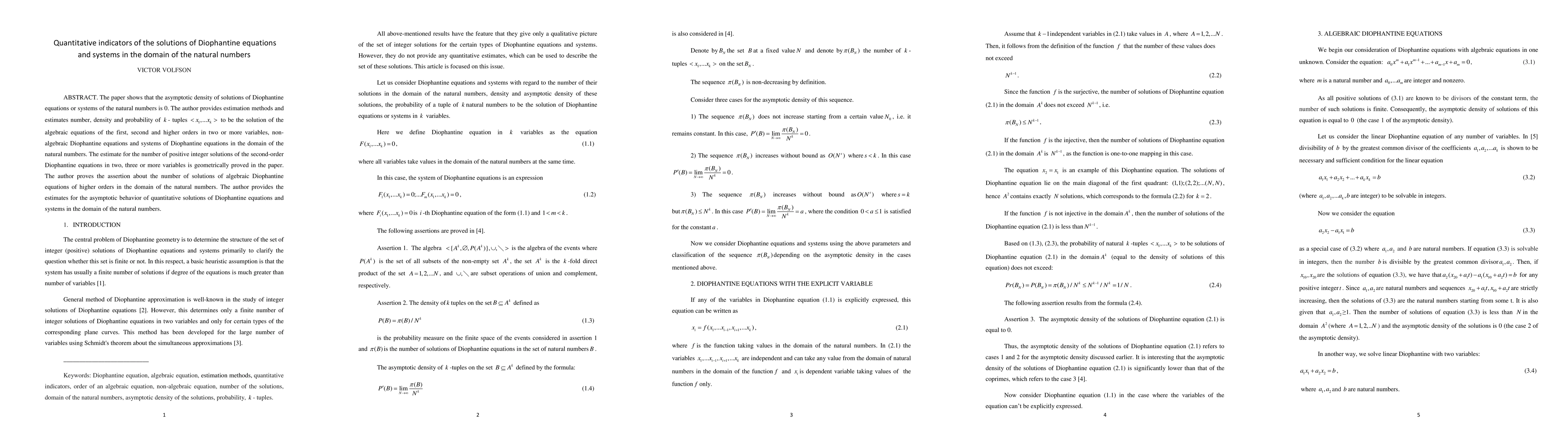 A research paper shows that the asymptotic density of solutions to Diophantine equations in natural numbers is 0, providing estimation methods for solution counts and densities.