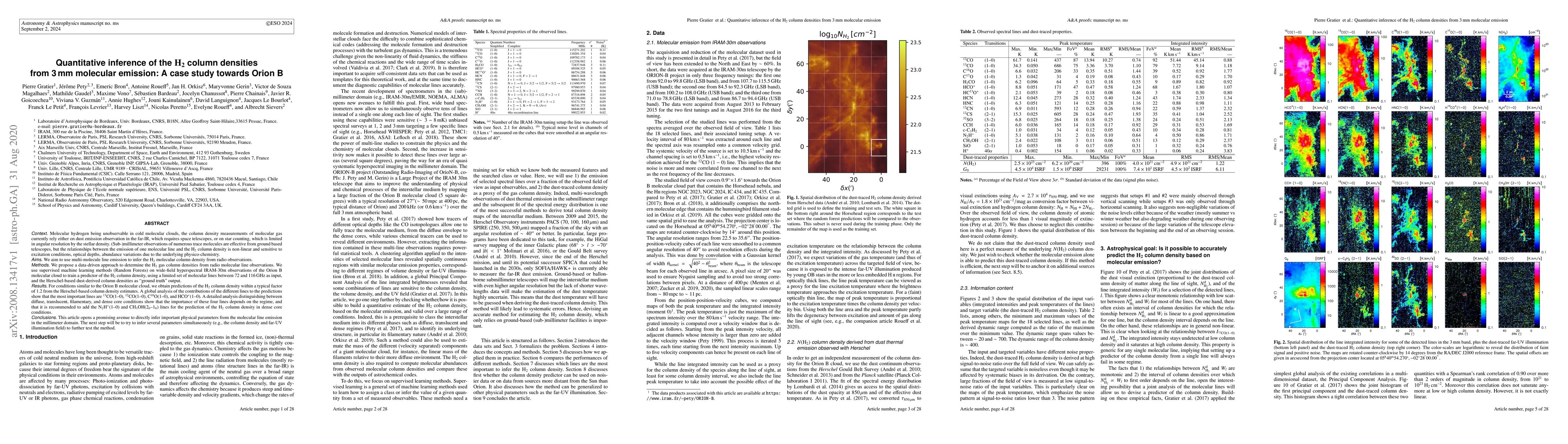 Molecular hydrogen being unobservable in cold molecular clouds, the column density measurements of molecular gas currently rely either on dust emission observation in the far-IR or on star counting. (Sub-)millimeter observations of numerous trace molecules are effective from ground based telescopes, but the relationships between the emission of one molecular line and the H2 column density (NH2) is non-linear and sensitive to excitation conditions, optical depths, abundance variations due to the underlying physico-chemistry. We aim to use multi-molecule line emission to infer NH2 from radio observations. We propose a data-driven approach to determine NH2 from radio molecular line observations. We use supervised machine learning methods (Random Forests) on wide-field hyperspectral IRAM-30m observations of the Orion B molecular cloud to train a predictor of NH2, using a limited set of molecular lines as input, and the Herschel-based dust-derived NH2 as ground truth output. For conditions similar to the Orion B molecular cloud, we obtain predictions of NH2 within a typical factor of 1.2 from the Herschel-based estimates. An analysis of the contributions of the different lines to the predictions show that the most important lines are $^{13}$CO(1-0), $^{12}$CO(1-0), C$^{18}$O(1-0), and HCO$^+$(1-0). A detailed analysis distinguishing between diffuse, translucent, filamentary, and dense core conditions show that the importance of these four lines depends on the regime, and that it is recommended to add the N$_2$H$^+$(1-0) and CH$_3$OH(20-10) lines for the prediction of NH2 in dense core conditions. This article opens a promising avenue to directly infer important physical parameters from the molecular line emission in the millimeter domain. The next step will be to try to infer several parameters simultaneously (e.g., NH2 and far-UV illumination field) to further test the method. [Abridged]
