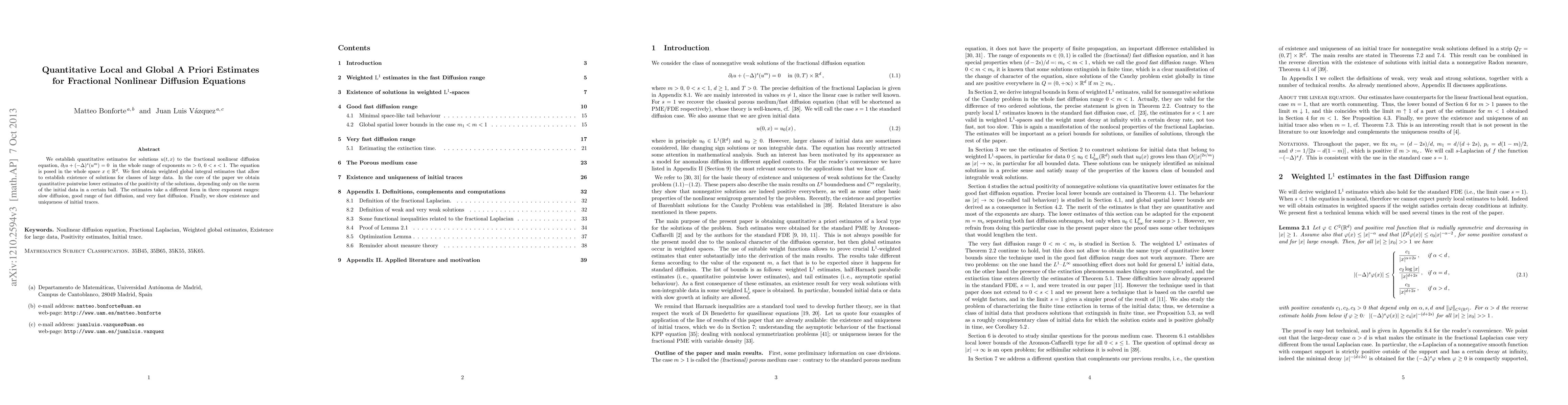 This paper provides quantitative local and global a priori estimates for solutions of fractional nonlinear diffusion equations, establishing existence for large initial data and deriving pointwise lower estimates of solution positivity based on initial data norms. The estimates vary across three diffusion regimes: slow, good range of fast, and very fast diffusion.