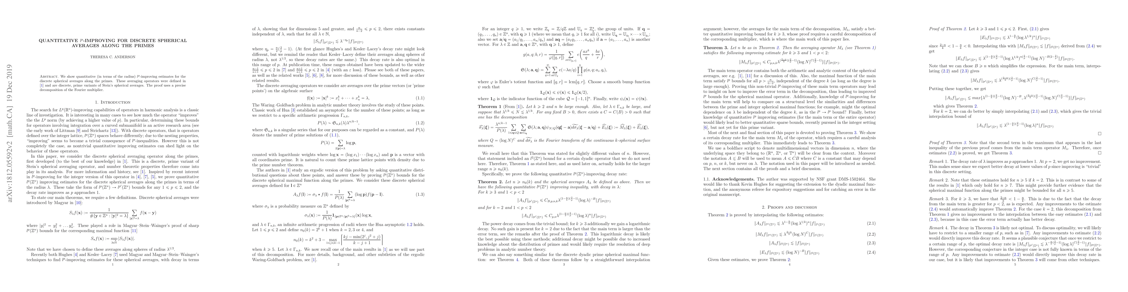 The paper presents a precise decomposition of the Fourier multiplier to prove quantitative $l^p$-improving estimates for discrete spherical averages along the primes.