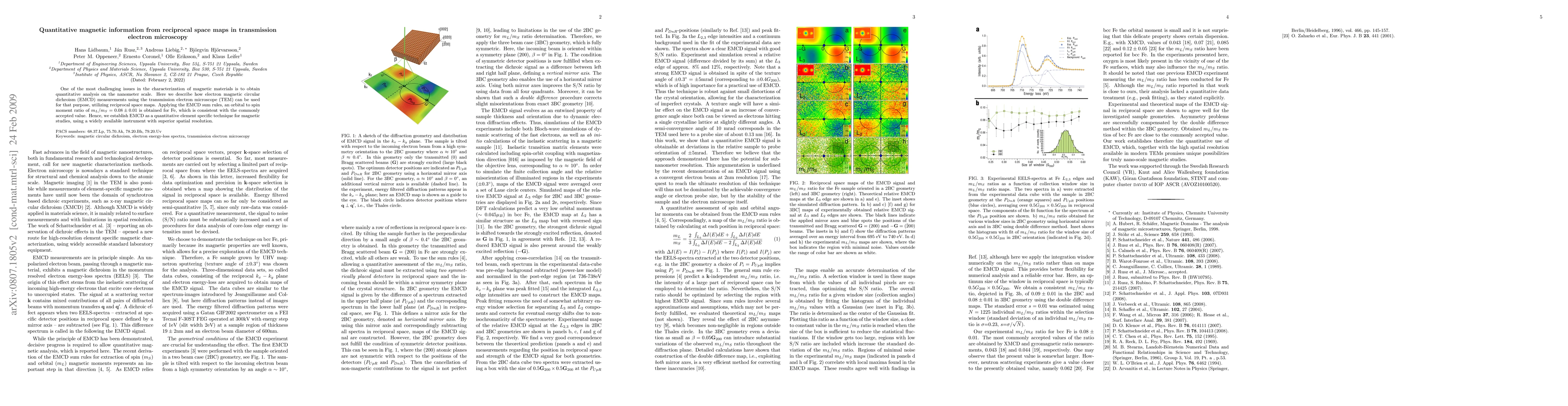 This paper demonstrates how electron magnetic circular dichroism (EMCD) measurements in transmission electron microscopy (TEM) can provide quantitative magnetic analysis at the nanoscale. The study establishes EMCD as a precise, element-specific technique for magnetic studies, yielding an orbital to spin moment ratio of $m_L/m_S=0.08 \pm 0.01$ for Fe, consistent with accepted values.