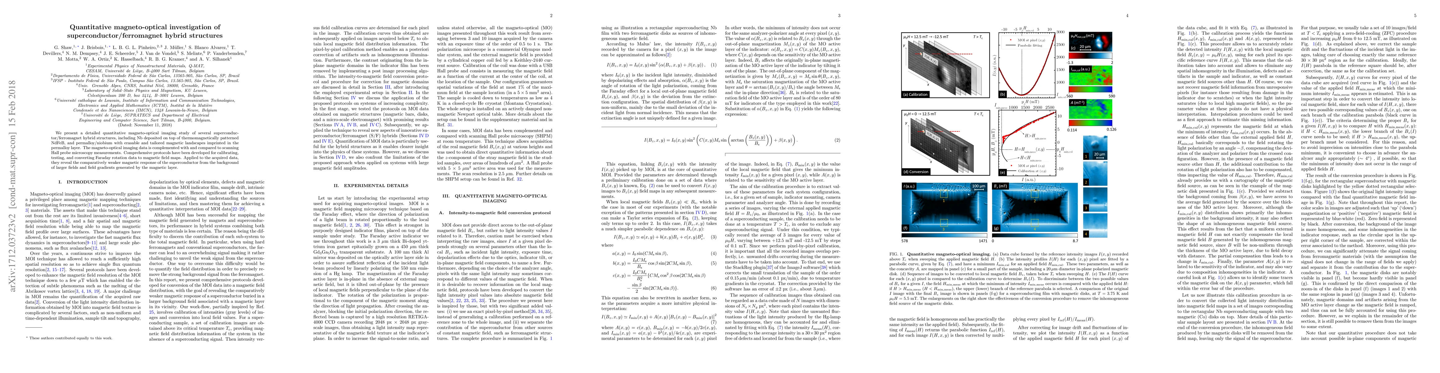This paper conducts a quantitative magneto-optical imaging study of superconductor/ferromagnet hybrid structures, specifically Nb on NdFeB and permalloy/niobium, revealing the weaker magnetic response of the superconductor amidst larger fields from the magnetic layers. The study is supported by scanning Hall probe microscopy and detailed protocols for converting Faraday rotation data to magnetic field maps.
