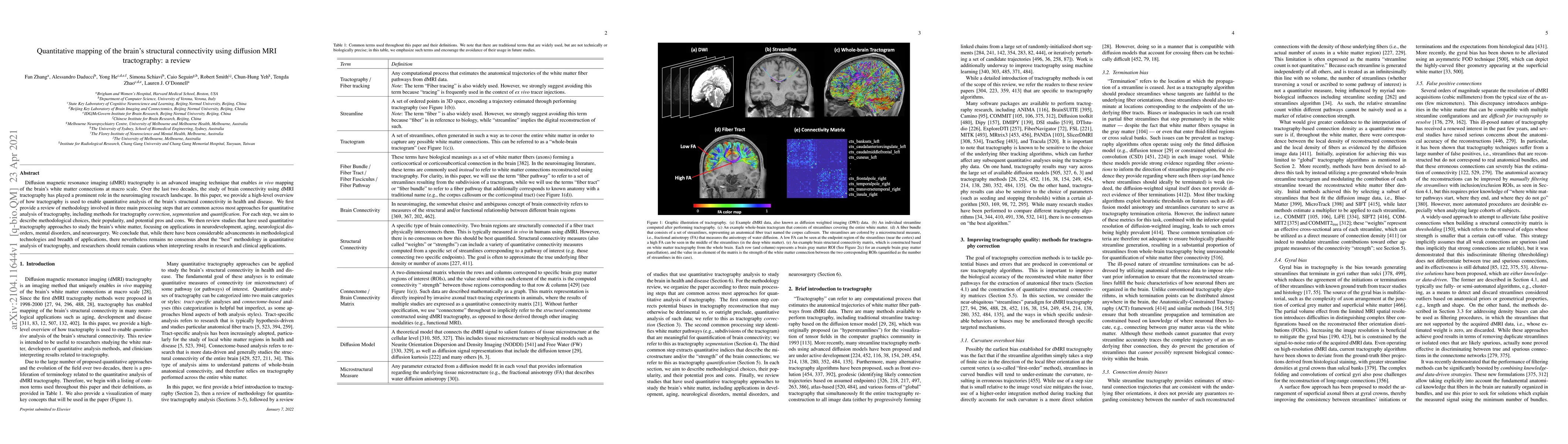 This paper reviews the use of diffusion MRI tractography to map the brain's structural connectivity, detailing the methodology and processing steps involved in quantitative analysis. It highlights the applications in various fields but notes the lack of consensus on the optimal methodology, urging cautious interpretation of results.