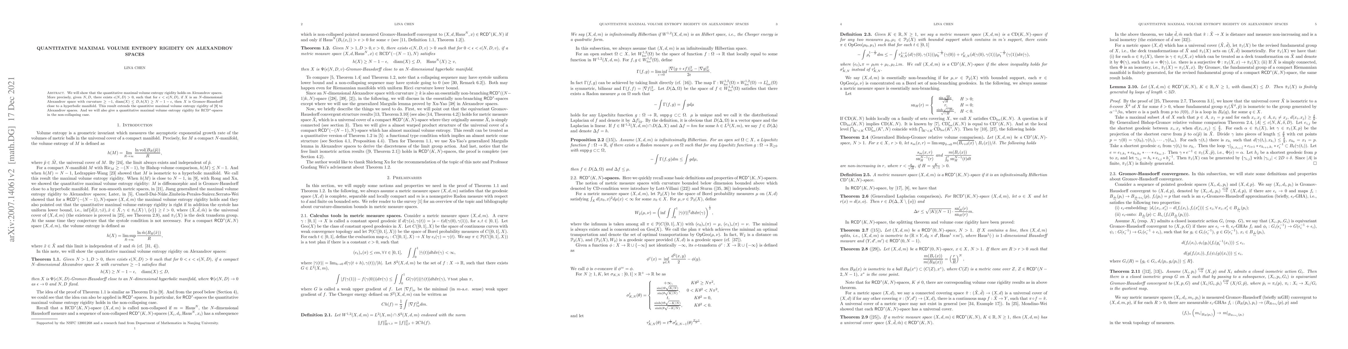 This paper demonstrates that quantitative maximal volume entropy rigidity applies to $N$-dimensional Alexandrov spaces with curvature $\geq -1$ and diameter $\leq D$, showing that such spaces with high entropy are close to hyperbolic manifolds. It extends previous results to Alexandrov spaces and also provides a similar result for $\op{RCD}^*$-spaces under non-collapsing conditions.