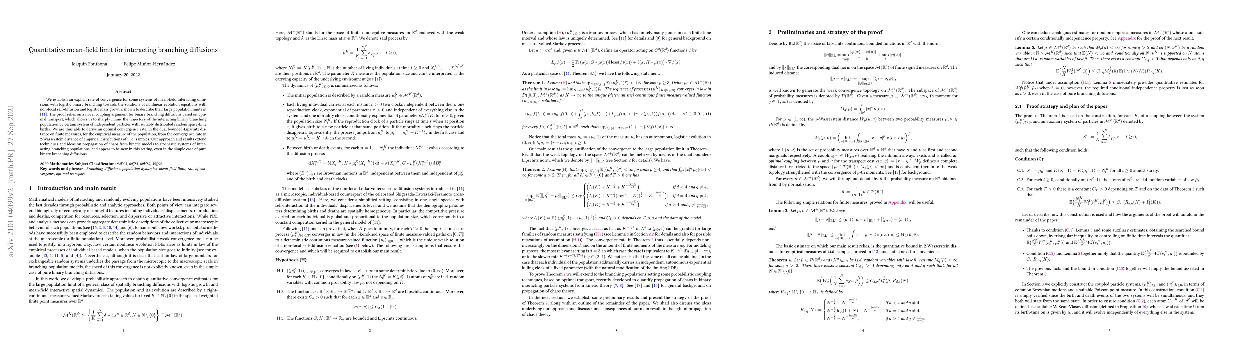 Researchers establish a rate of convergence for interacting branching diffusions to nonlinear evolution equations, using a novel coupling argument based on optimal transport, with implications for understanding large population limits.