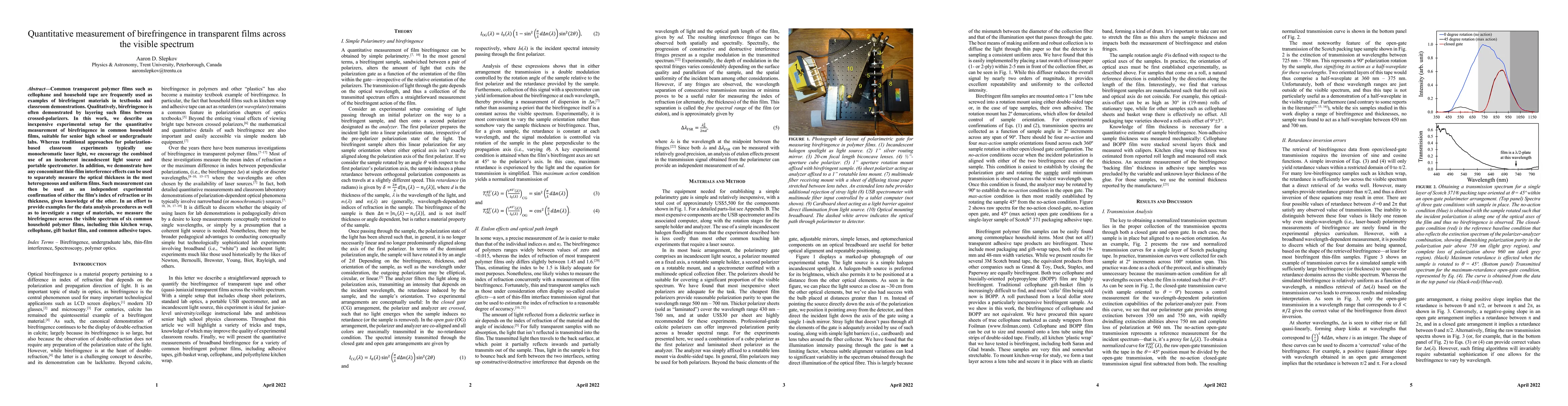 This paper presents a cost-effective experimental setup for quantitatively measuring birefringence in common transparent polymer films using an incandescent light source and a portable spectrometer across the visible spectrum. The study also demonstrates how thin-film interference effects can be used to measure optical thickness, providing an independent verification of film properties.