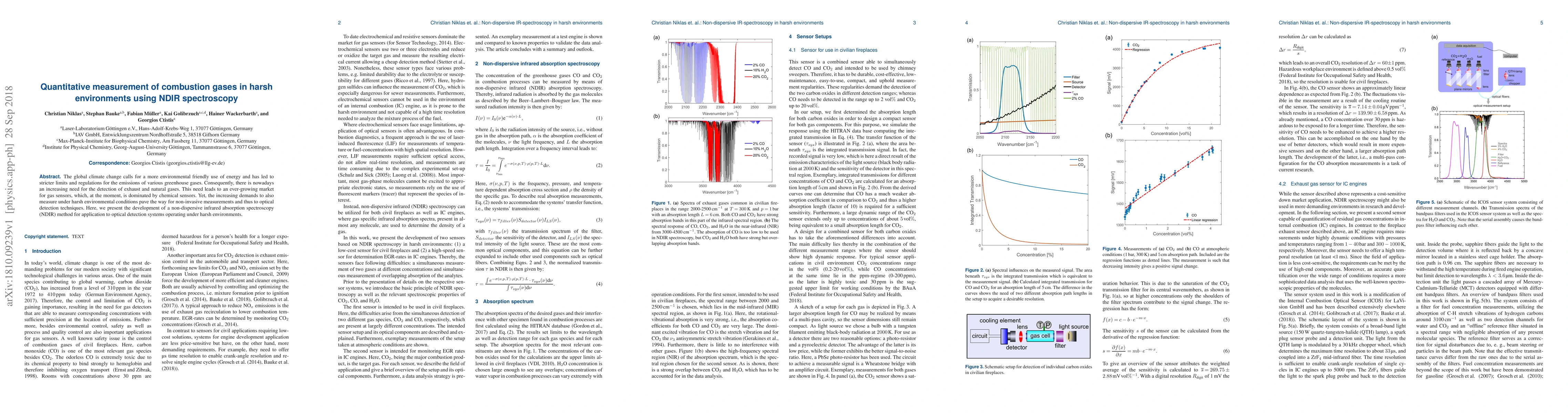 This paper presents the development of a non-dispersive infrared absorption spectroscopy (NDIR) method for detecting combustion gases in harsh environments, addressing the need for more environmentally friendly energy use and stricter emission regulations. The proposed optical detection technique aims to improve the accuracy and reliability of gas sensors under challenging conditions.