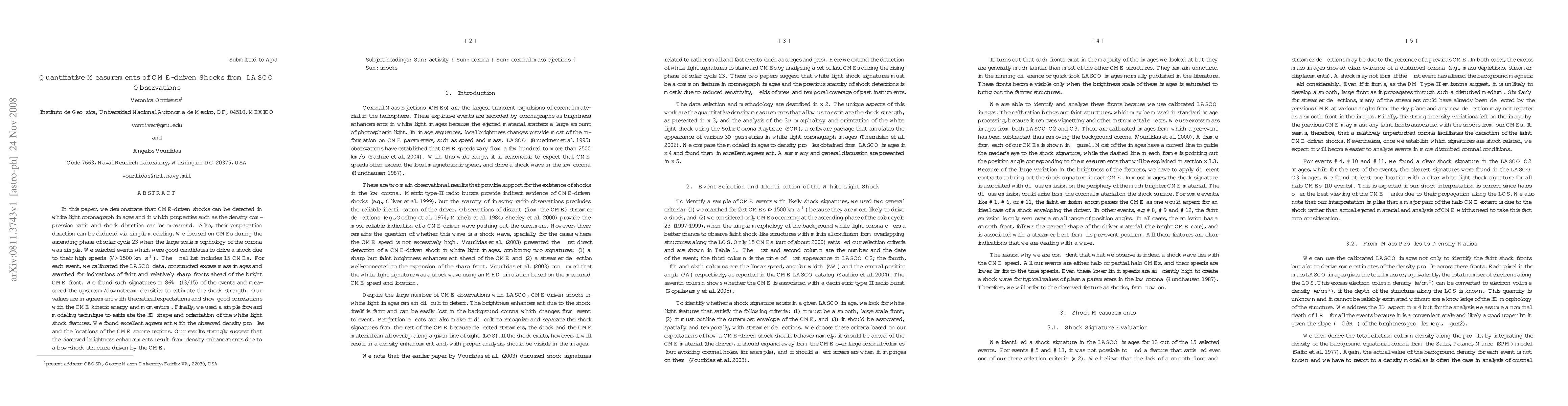 This paper demonstrates that CME-driven shocks can be detected in LASCO white light coronagraph images, with the density compression ratio and shock direction measurable. The study found shock signatures in 86% of 15 high-speed CMEs, showing good correlations with CME energy and momentum, and confirming the presence of bow-shock structures.