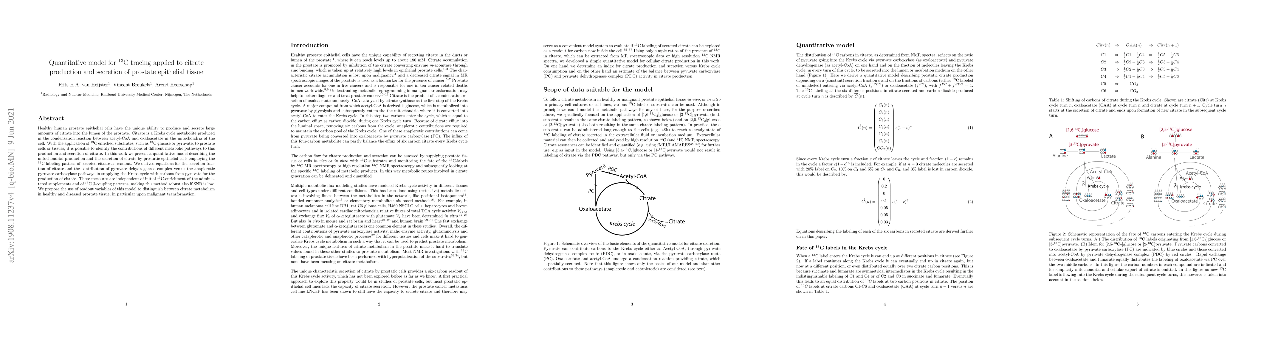 Researchers developed a model to track citrate production in prostate cells using 13C labeling, enabling differentiation between healthy and diseased tissue.
