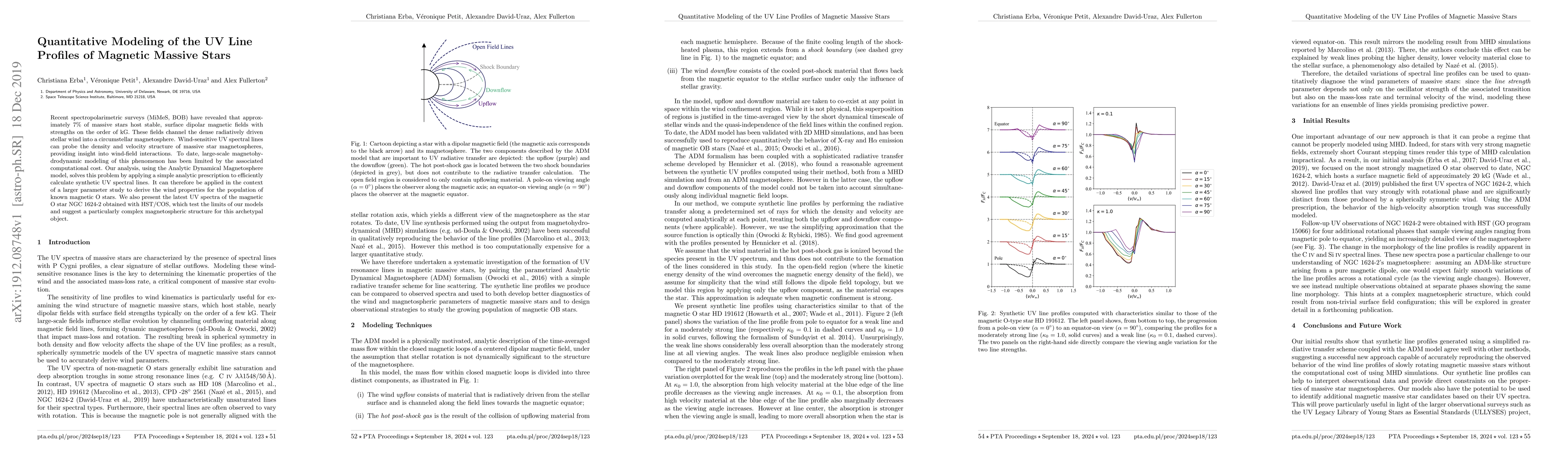 This paper presents an efficient analytic model to simulate UV line profiles in magnetic massive stars, enabling large-scale studies of wind-field interactions. The model is tested with HST/COS spectra of NGC 1624-2, revealing a complex magnetospheric structure.