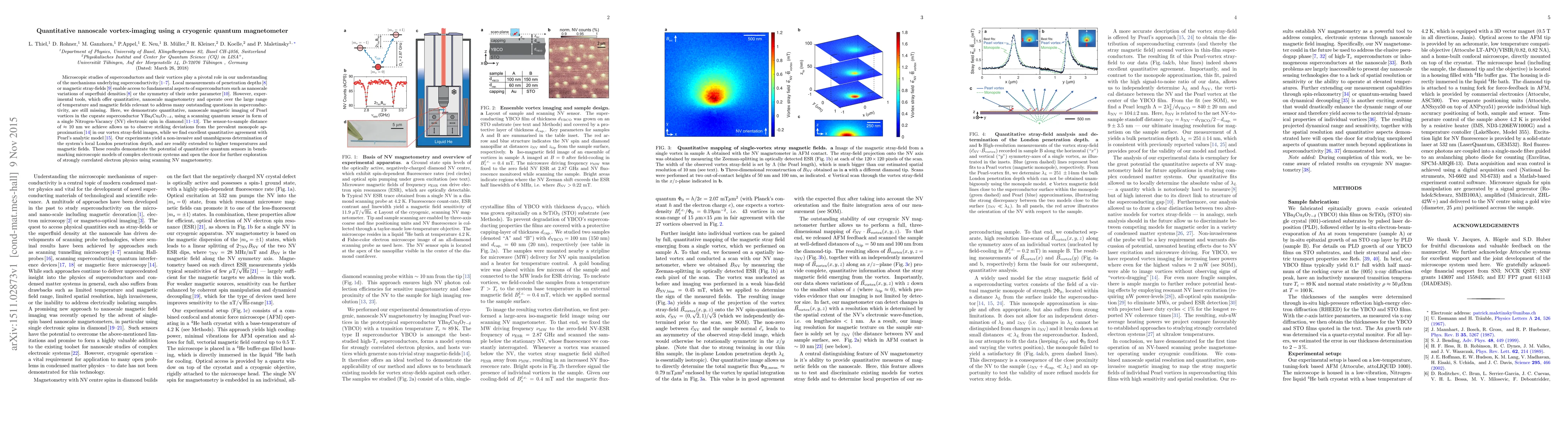 This paper demonstrates nanoscale magnetic imaging of vortices in superconductors using a cryogenic quantum magnetometer based on a Nitrogen-Vacancy center in diamond. The study reveals deviations from the monopole approximation in vortex stray-fields and provides a non-invasive method to determine local London penetration depth, showcasing the potential of quantum sensors in exploring complex electronic systems.