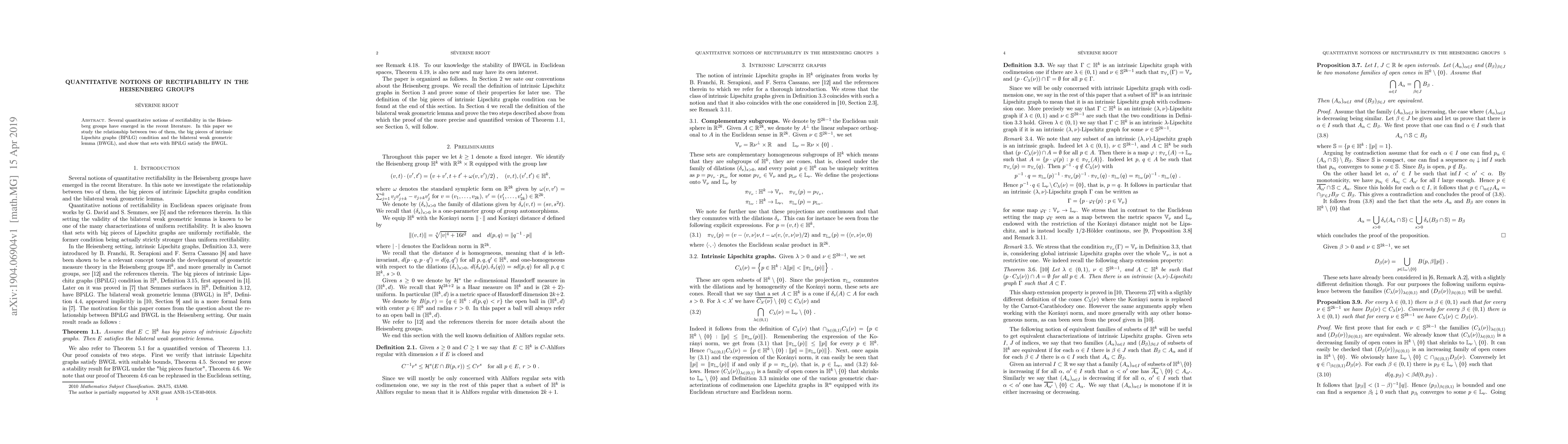 This paper explores the relationship between two quantitative notions of rectifiability in Heisenberg groups: the big pieces of intrinsic Lipschitz graphs (BPiLG) condition and the bilateral weak geometric lemma (BWGL). It demonstrates that sets satisfying the BPiLG condition also satisfy the BWGL.