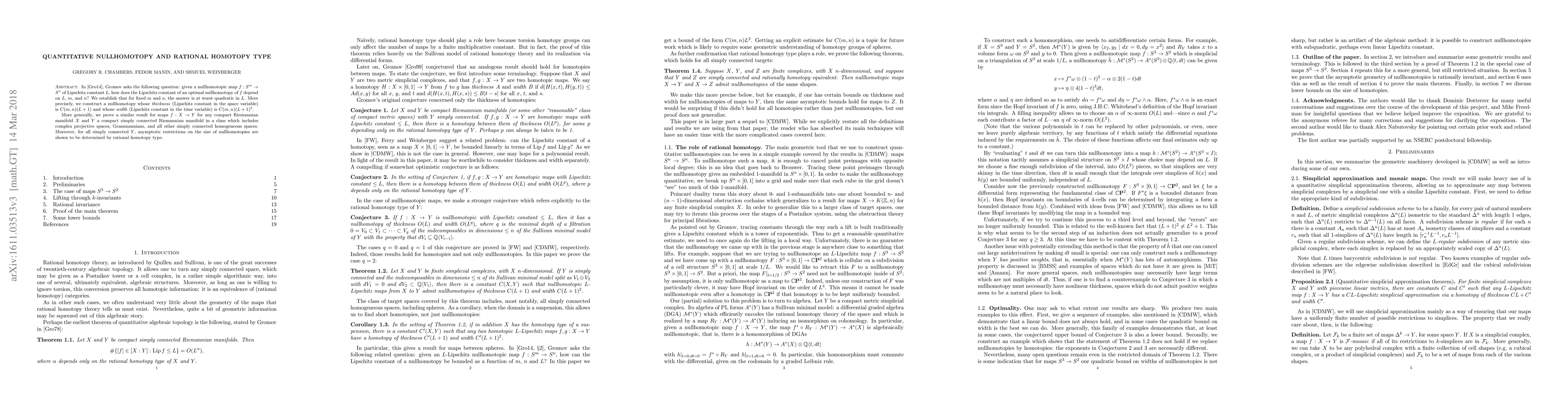 This research establishes that for nullhomotopic maps f:S^m to S^n of Lipschitz constant L, the optimal nullhomotopy's Lipschitz constant is at most quadratic in L, specifically with thickness C(m,n)(L+1) and width C(m,n)(L+1)^2. This result extends to compact Riemannian manifold maps to compact simply connected Riemannian manifolds, including complex projective spaces and Grassmannians. The study also reveals that for simply connected Y, nullhomotopy size is asymptotically governed by rational homotopy type.