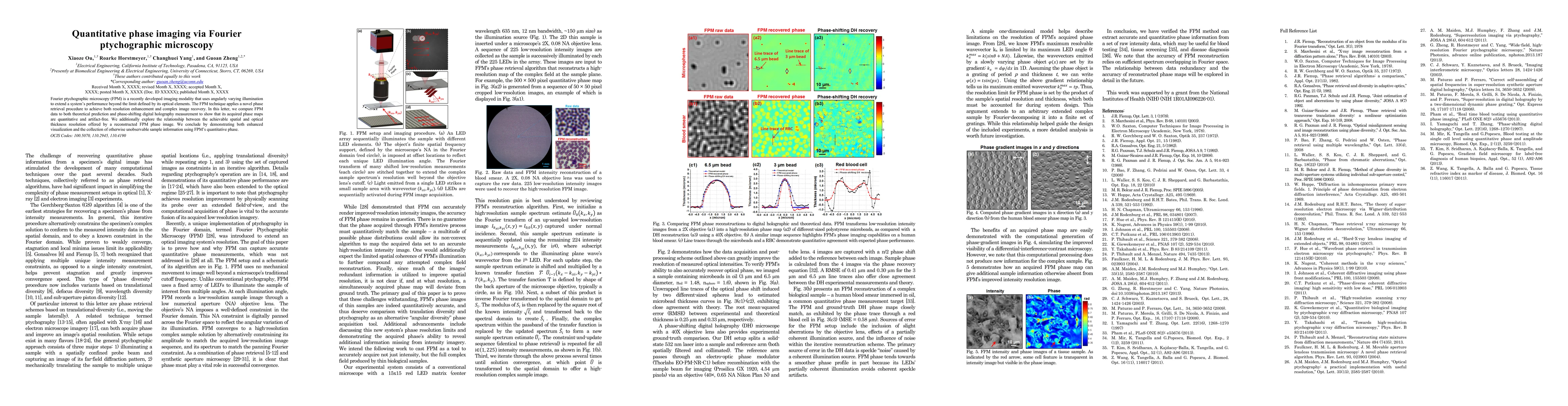 Fourier ptychographic microscopy (FPM) enhances resolution and recovers complex images through angularly varying illumination and phase retrieval. This paper demonstrates FPM's quantitative phase maps via comparison with theoretical predictions and phase-shifting digital holography, showcasing its ability to provide enhanced visualization and unobservable sample information.