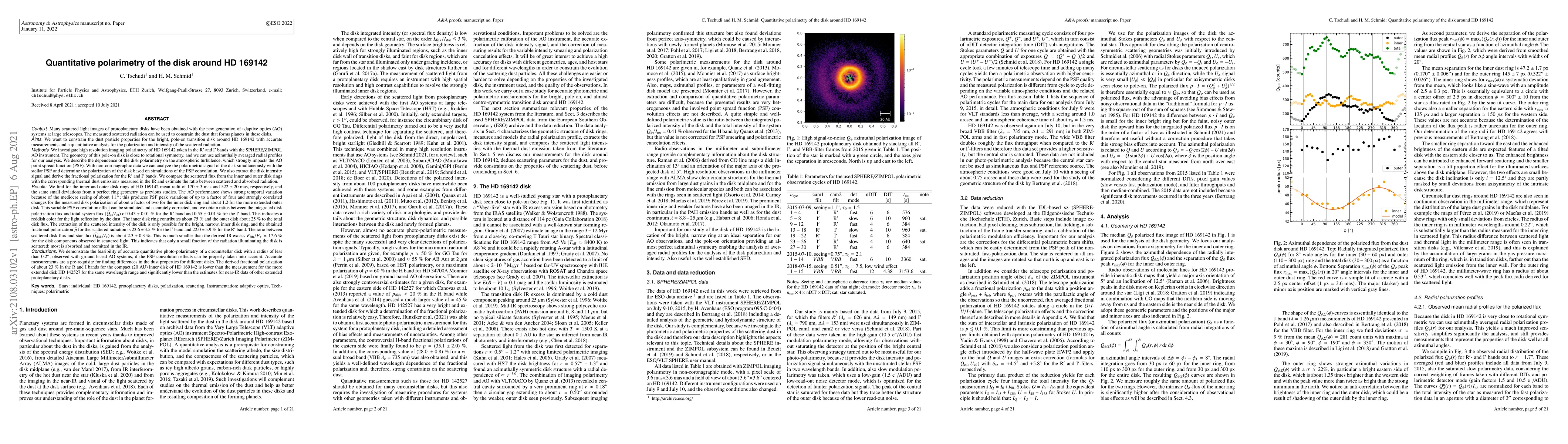 We investigate high resolution imaging polarimetry of HD 169142 taken in the R' and I' bands with the SPHERE/ZIMPOL instrument for an accurate quantitative measurement of the radiation scattered by the circumstellar disk. We observe a strong dependence of the disk polarimetry on the atmospheric turbulences, which strongly impact the AO performance. With our non-coronagraphic data we can analyze the polarimetric signal of the disk simultaneously with the strongly variable stellar PSF, correct for the convolution effects to determine the intrinsic polarization of the disk with high precision. We also extract the disk intensity signal and derive the fractional polarization. We compare the scattered flux from the inner and outer disk rings with the corresponding thermal dust emissions measured in the IR and estimate the ratio between scattered and absorbed radiation. We obtain ratios between the integrated disk polarization flux and total system flux of 0.43% for the R' band and 0.55% for the I' band. This indicates a reddish color for the light reflection by the dust. The inner disk ring contributes about 75% to the total disk flux. The obtained fractional polarization for the bright inner disk ring is 23.6% for the I' band and similar for the R' band. The ratio between scattered disk flux and star flux is about 2.3%. This is much smaller than the derived IR excess of 17.6% for the disk components observed in scattered light. This indicates that only a small fraction of the radiation illuminating the disk is scattered; most is absorbed and reemitted in the IR. We conclude that accurate, quantitative measurements of the scattered light from circumstellar disks are possible with ground based high contrast AO systems, if the PSF convolution effects are properly taken into account, and this provides important new constraints on the properties of the scattering dust.