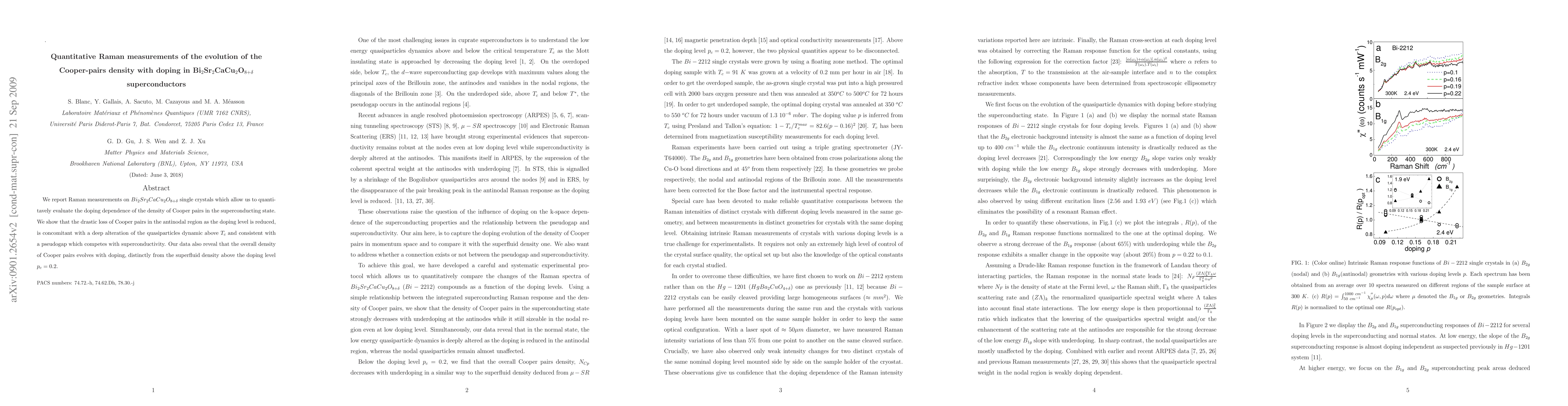 We report Raman measurements on Bi2Sr2CaCu2O8+d single crystals which allow us to quantitavely evaluate the doping dependence of the density of Cooper pairs in the superconducting state. We show that the drastic loss of Cooper pairs in the antinodal region as the doping level is reduced, is concomitant with a deep alteration of the quasiparticles dynamic above Tc and consistent with a pseudogap which competes with superconductivity. Our data also reveal that the overall density of Cooper pairs evolves with doping, distinctly from the superfluid density above the doping level pc=0.2.
