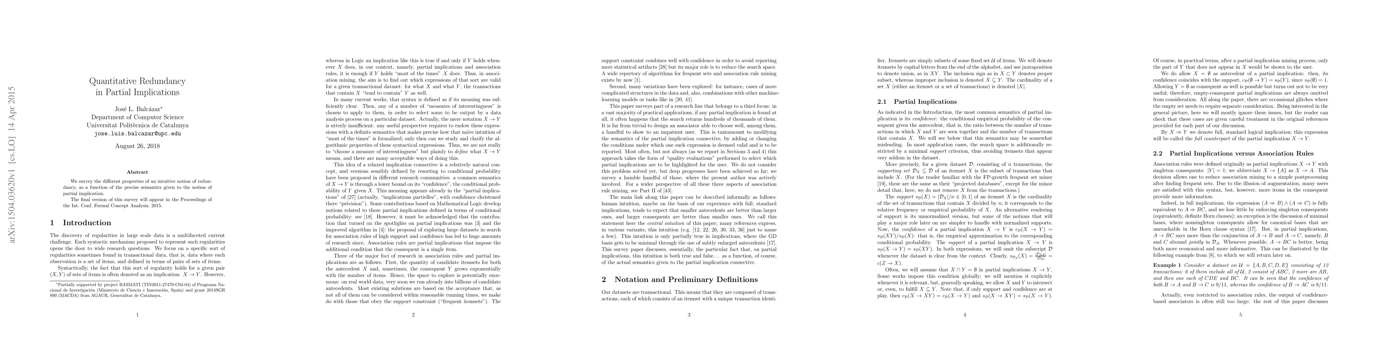 It investigates the precise semantics given to the notion of partial implication, shedding light on quantitative redundancy and its applications.