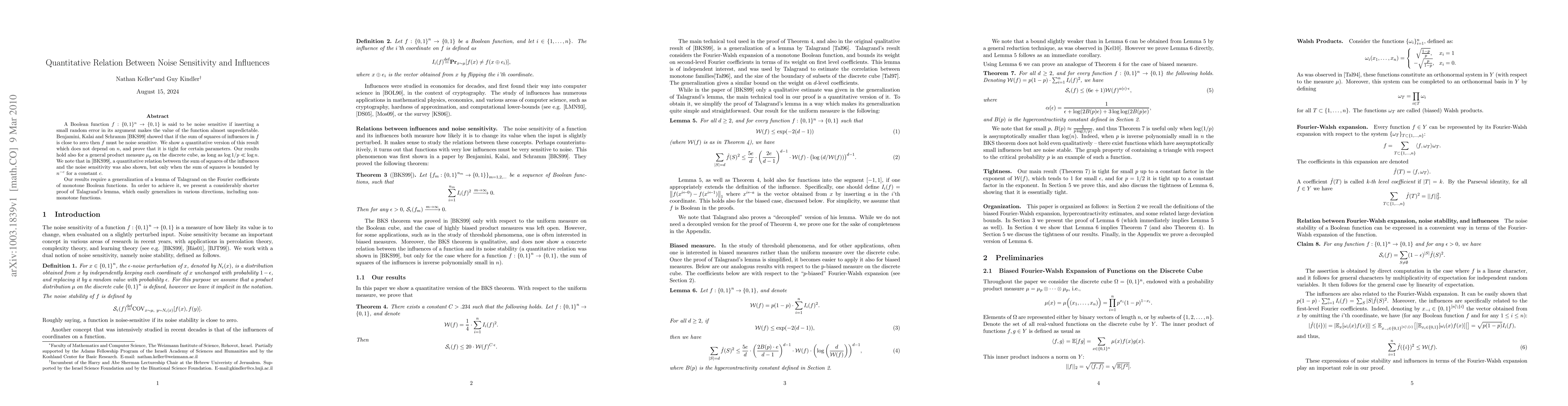 A Boolean function $f:\{0,1\}^n \to \{0,1\}$ is said to be noise sensitive if inserting a small random error in its argument makes the value of the function almost unpredictable. Benjamini, Kalai and Schramm showed that if the sum of squares of influences in $f$ is close to zero then $f$ must be noise sensitive. We show a quantitative version of this result which does not depend on $n$, and prove that it is tight for certain parameters. Our results hold also for a general product measure $\mu_p$ on the discrete cube, as long as $\log 1/p \ll \log n$. We note that in [BKS], a quantitative relation between the sum of squares of the influences and the noise sensitivity was also shown, but only when the sum of squares is bounded by $n^{-c}$ for a constant $c$. Our results require a generalization of a lemma of Talagrand on the Fourier coefficients of monotone Boolean functions. In order to achieve it, we present a considerably shorter proof of Talagrand's lemma, which easily generalizes in various directions, including non-monotone functions.
