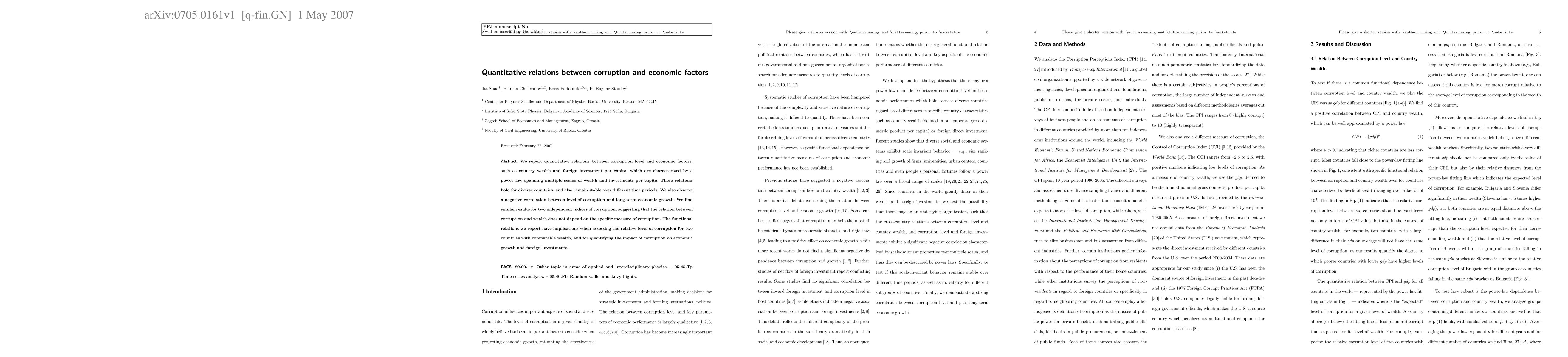 This paper quantifies the power law relationship between corruption levels and economic factors like country wealth and foreign investment per capita, revealing consistent patterns across different countries and time periods. It also finds a negative correlation between corruption and long-term economic growth, with implications for comparing corruption levels and assessing its impact on economic growth and foreign investments.