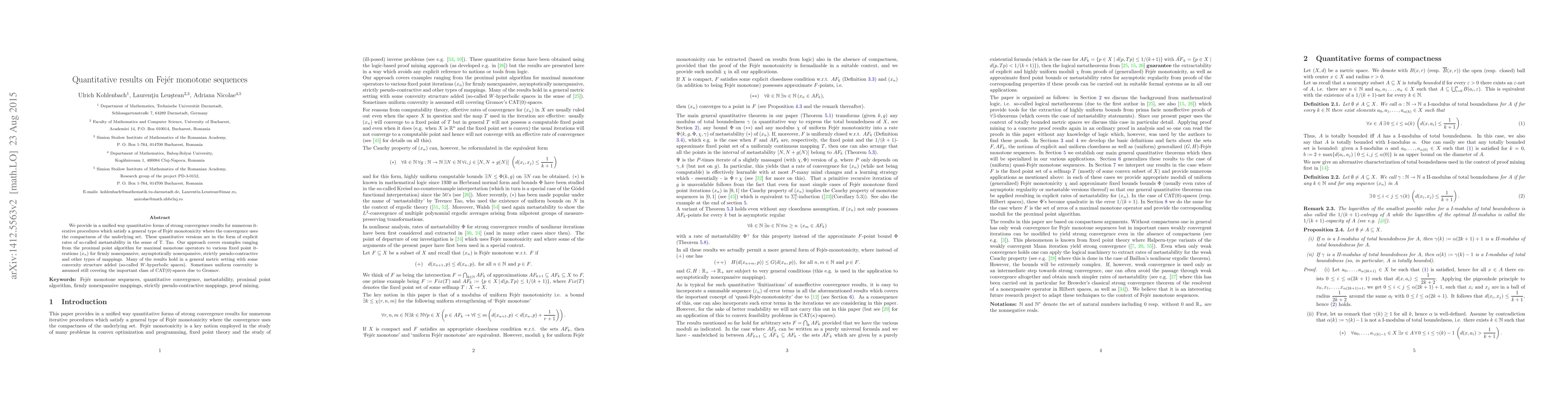 We provide in a unified way quantitative forms of strong convergence results for numerous iterative procedures which satisfy a general type of Fejer monotonicity where the convergence uses the compactness of the underlying set. These quantitative versions are in the form of explicit rates of so-called metastability in the sense of T. Tao. Our approach covers examples ranging from the proximal point algorithm for maximal monotone operators to various fixed point iterations (x_n) for firmly nonexpansive, asymptotically nonexpansive, strictly pseudo-contractive and other types of mappings. Many of the results hold in a general metric setting with some convexity structure added (so-called W-hyperbolic spaces). Sometimes uniform convexity is assumed still covering the important class of CAT(0)-spaces due to Gromov.