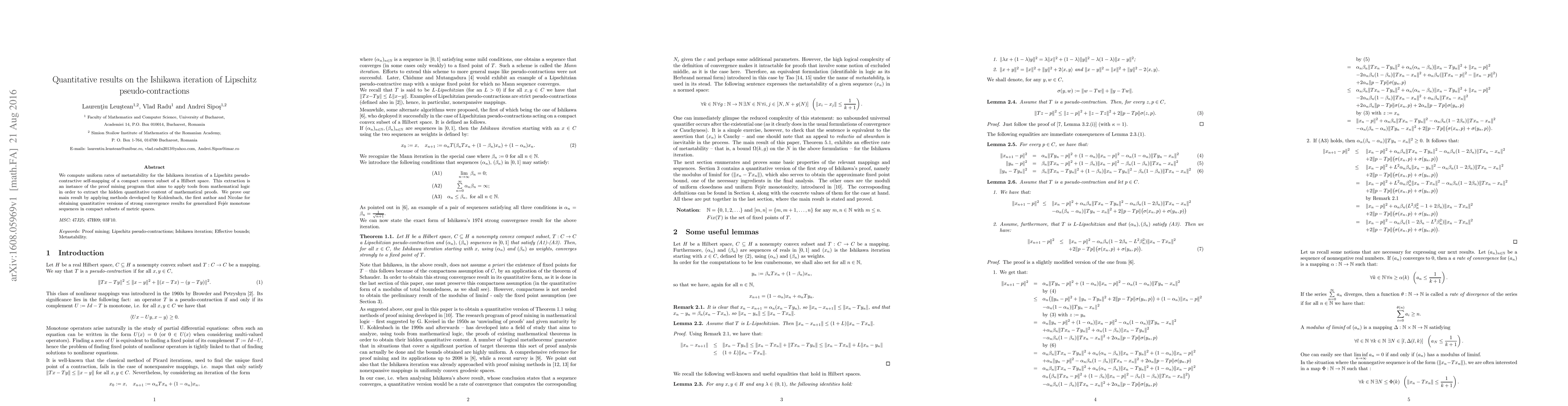 We compute uniform rates of metastability for the Ishikawa iteration of a Lipschitz pseudo-contractive self-mapping of a compact convex subset of a Hilbert space. This extraction is an instance of the proof mining program that aims to apply tools from mathematical logic in order to extract the hidden quantitative content of mathematical proofs. We prove our main result by applying methods developed by Kohlenbach, the first author and Nicolae for obtaining quantitative versions of strong convergence results for generalized Fej\'er monotone sequences in compact subsets of metric spaces.
