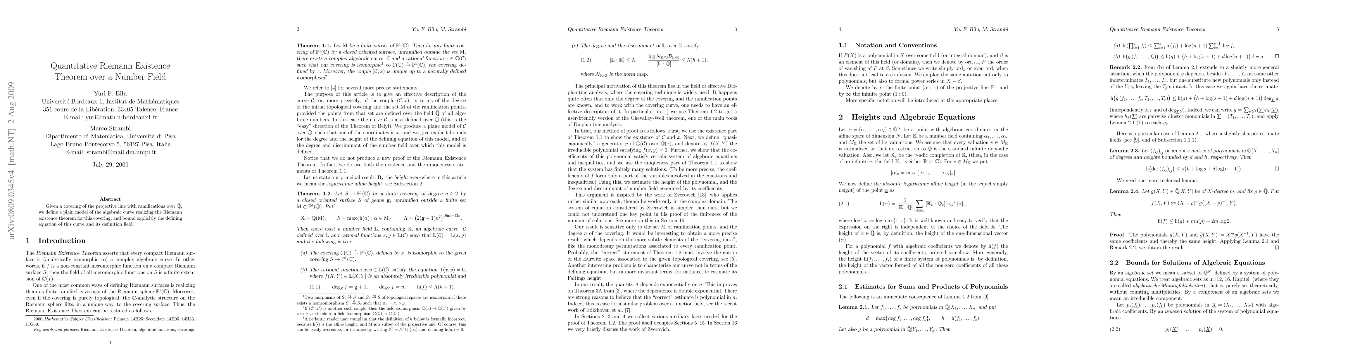 Given a covering of the projective line with ramifications defined over a number field, we define a plain model of the algebraic curve realizing the Riemann existence theorem for this covering, and bound explicitly the defining equation of this curve and its definition field.