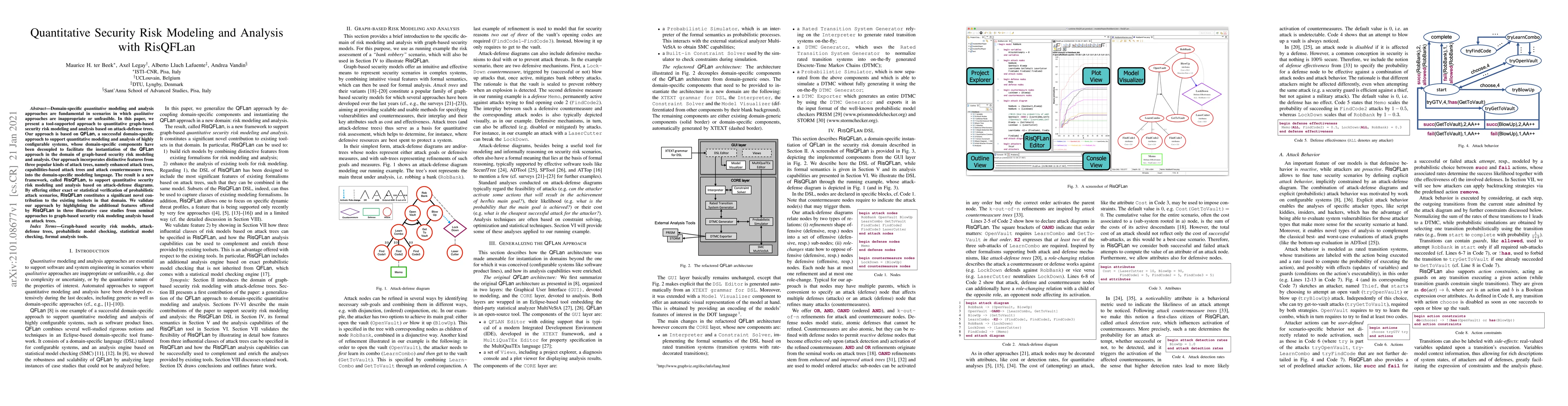 The development of RisQFLan, which integrates distinctive features from three popular kinds of attack trees into a domain-specific modeling language.