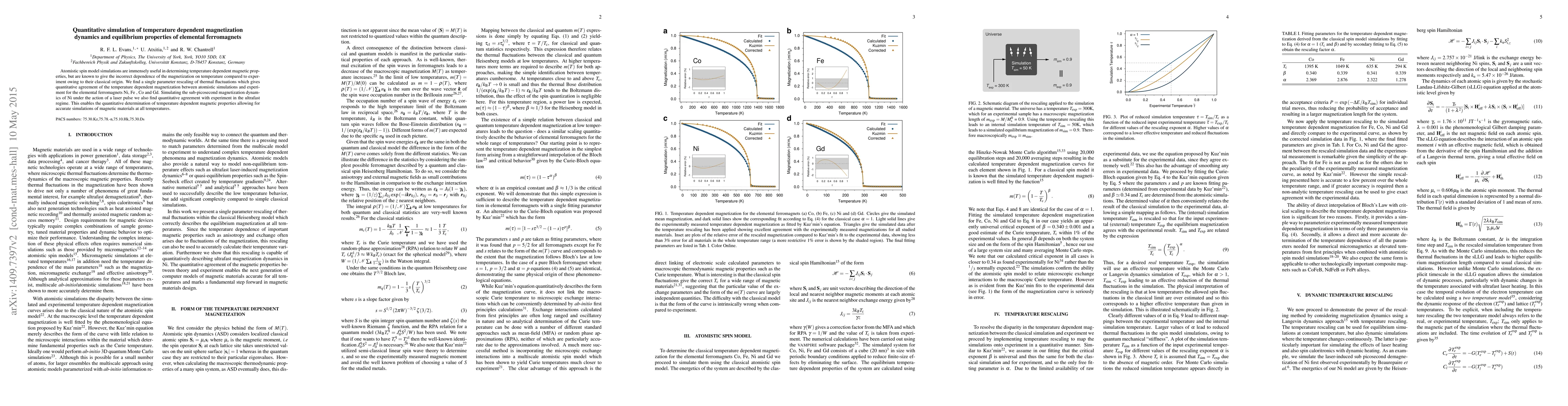 Researchers developed a rescaling method to correct for classical errors in atomistic spin model simulations of ferromagnetism, achieving quantitative agreement with experimental data at both low and high temperatures.