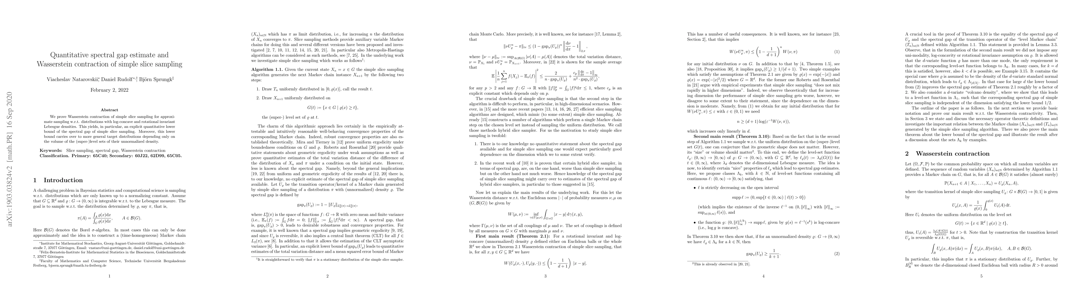 This paper establishes Wasserstein contraction for simple slice sampling, demonstrating its effectiveness for approximate sampling from log-concave and rotational invariant distributions. It also provides an explicit quantitative lower bound for the spectral gap of simple slice sampling, extending this result to broader target distributions.