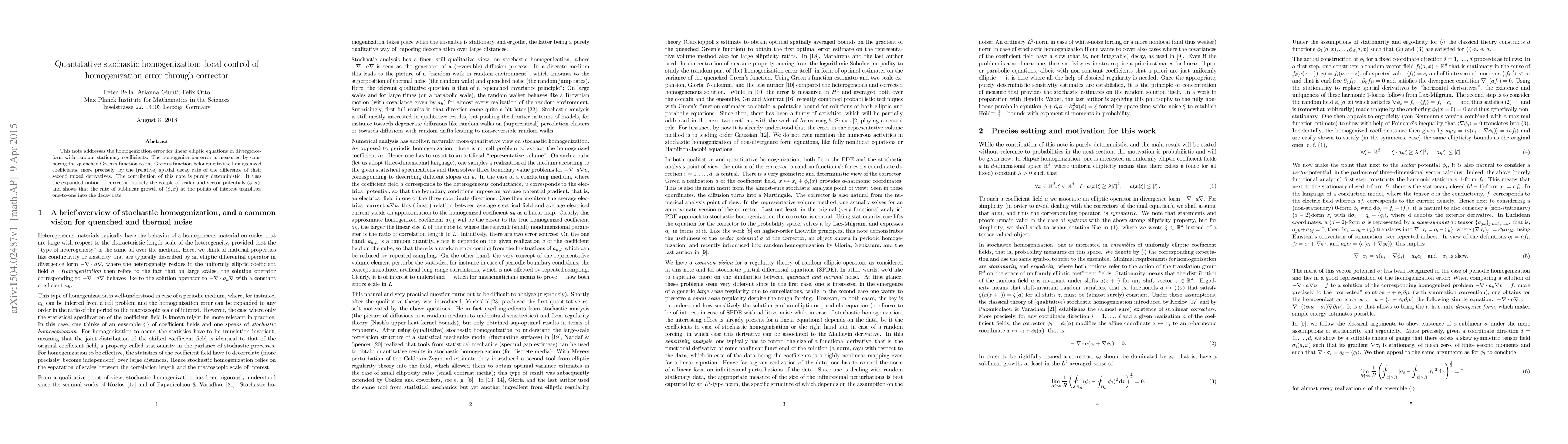 This research paper explores how to control homogenization errors in linear elliptic equations with random coefficients by analyzing the growth rate of a corrected potential, which directly relates to the decay rate of the error.