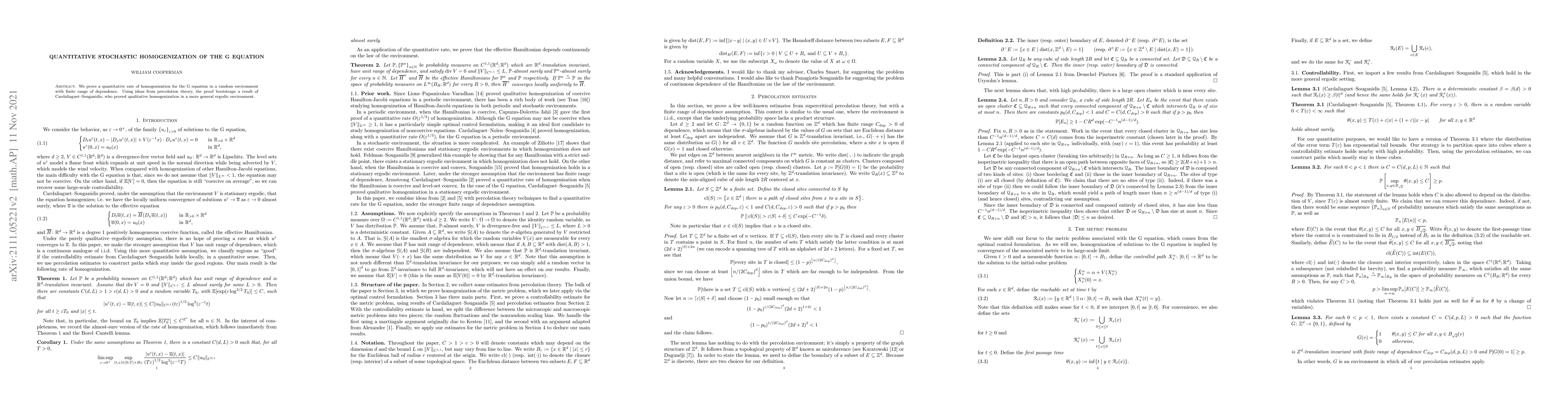 This paper establishes a quantitative rate of homogenization for the G equation in a random environment with finite range dependence, leveraging percolation theory to extend the qualitative results of Cardaliaguet and Souganidis to a more precise quantitative analysis.