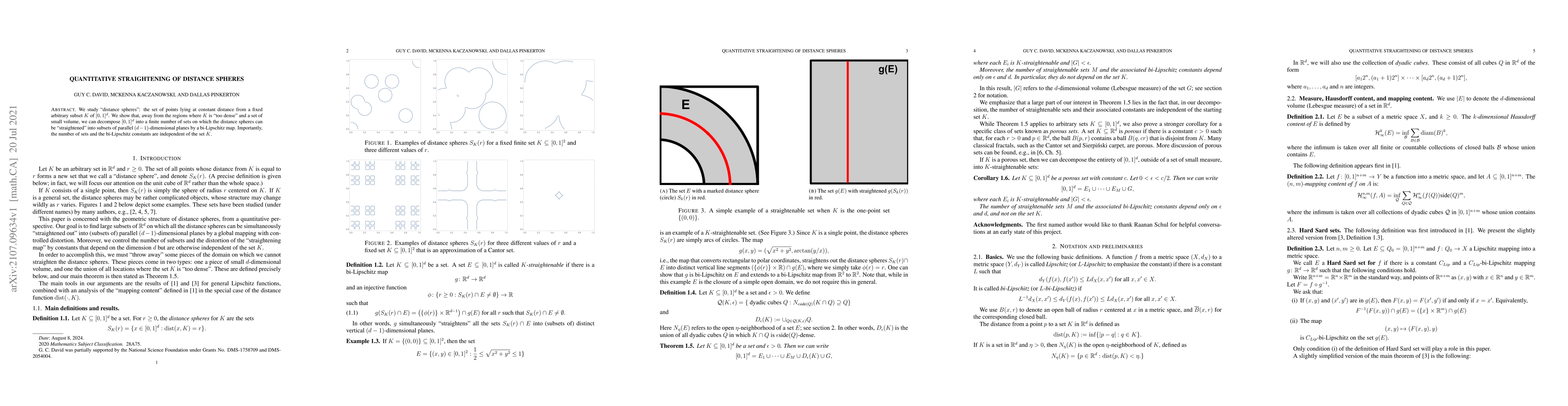 We study "distance spheres": the set of points lying at constant distance from a fixed arbitrary subset $K$ of $[0,1]^d$. We show that, away from the regions where $K$ is "too dense" and a set of small volume, we can decompose $[0,1]^d$ into a finite number of sets on which the distance spheres can be "straightened" into subsets of parallel $(d-1)$-dimensional planes by a bi-Lipschitz map. Importantly, the number of sets and the bi-Lipschitz constants are independent of the set $K$.