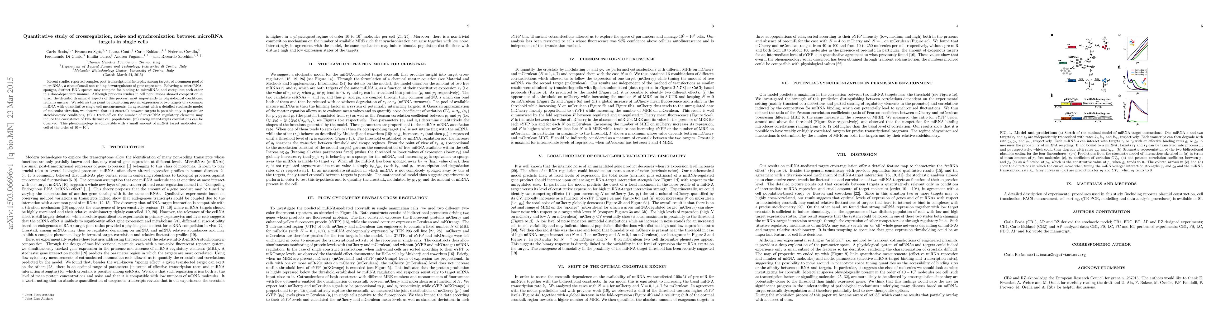 Recent studies reported complex post-transcriptional interplay among targets of a common pool of microRNAs, a class of small non-coding downregulators of gene expression. Behaving as microRNA-sponges, distinct RNA species may compete for binding to microRNAs and coregulate each other in a dose-dependent manner. Although previous studies in cell populations showed competition in vitro, the detailed dynamical aspects of this process, most importantly in physiological conditions, remains unclear. We address this point by monitoring protein expression of two targets of a common miRNA with quantitative single-cell measurements. In agreement with a detailed stochastic model of molecular titration, we observed that: (i) crosstalk between targets is possible only in particular stoichiometric conditions, (ii) a trade-off on the number of microRNA regulatory elements may induce the coexistence of two distinct cell populations, (iii) strong inter-targets correlations can be observed. This phenomenology is compatible with a small amount of mRNA target molecules per cell of the order of 10-100.