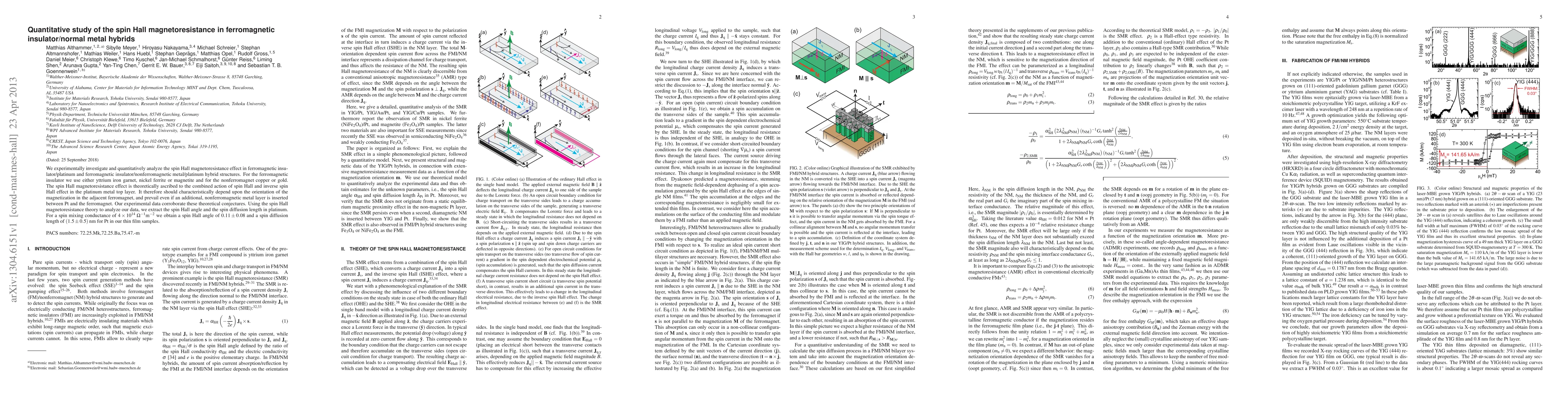 We experimentally investigate and quantitatively analyze the spin Hall magnetoresistance effect in ferromagnetic insulator/platinum and ferromagnetic insulator/nonferromagnetic metal/platinum hybrid structures. For the ferromagnetic insulator we use either yttrium iron garnet, nickel ferrite or magnetite and for the nonferromagnet copper or gold. The spin Hall magnetoresistance effect is theoretically ascribed to the combined action of spin Hall and inverse spin Hall effect in the platinum metal top layer. It therefore should characteristically depend upon the orientation of the magnetization in the adjacent ferromagnet, and prevail even if an additional, nonferromagnetic metal layer is inserted between Pt and the ferromagnet. Our experimental data corroborate these theoretical conjectures. Using the spin Hall magnetoresistance theory to analyze our data, we extract the spin Hall angle and the spin diffusion length in platinum. For a spin mixing conductance of $4\times10^{14}\;\mathrm{\Omega^{-1}m^{-2}}$ we obtain a spin Hall angle of $0.11\pm0.08$ and a spin diffusion length of $(1.5\pm0.5)\;\mathrm{nm}$ for Pt in our thin film samples.