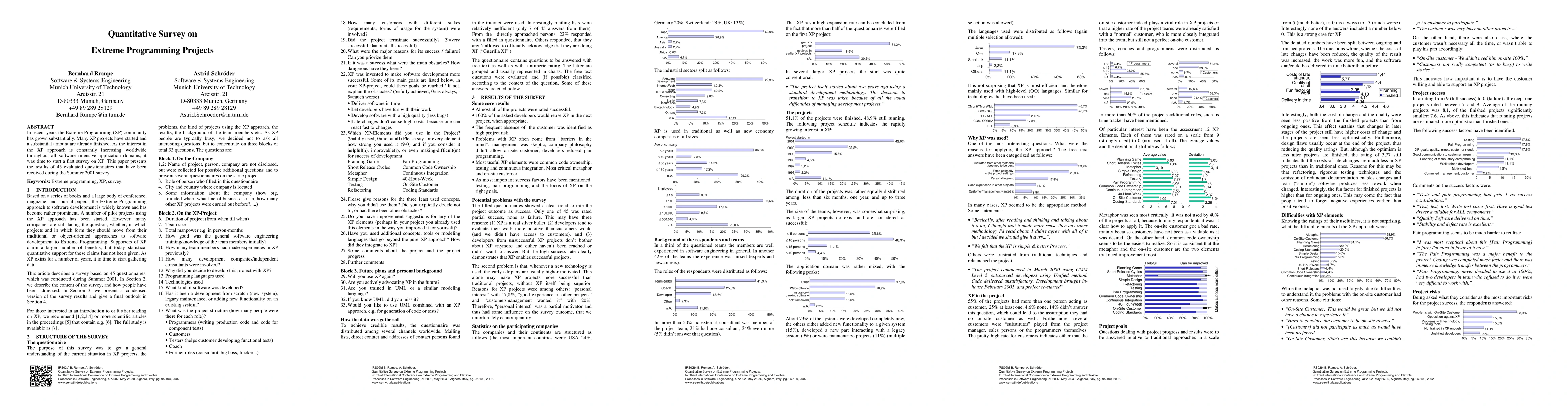In recent years the Extreme Programming (XP) community has grown substantially. Many XP projects have started and a substantial amount are already finished. As the interest in the XP approach is constantly increasing worldwide throughout all software intensive application domains, it was time to start a first survey on XP. This paper presents the results of 45 evaluated questionnaires that have been received during the Summer 2001 survey.
