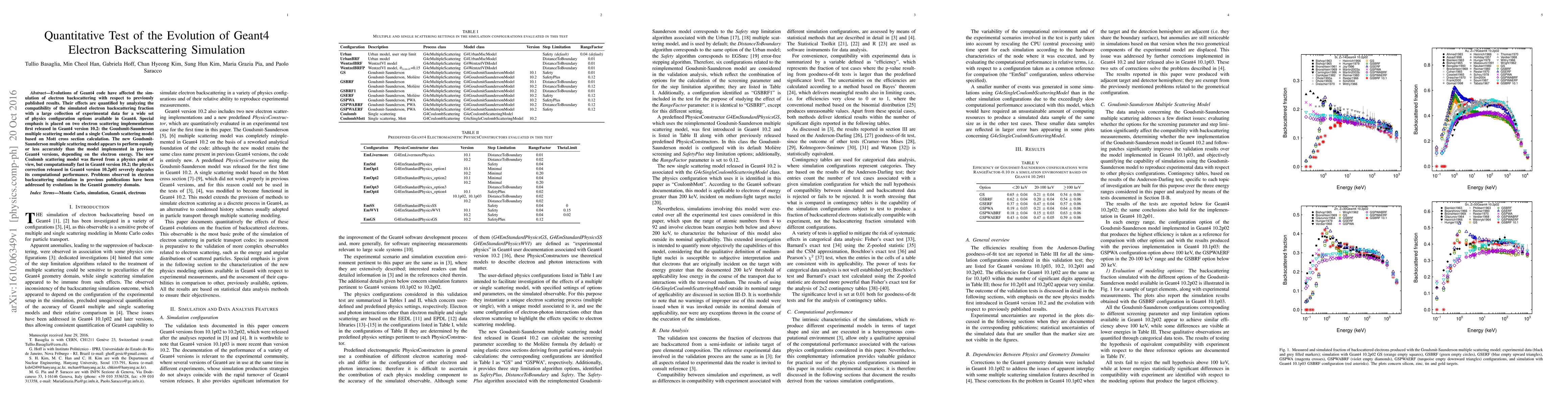 The research methodology used a validation test of Geant4 simulation of electron backscattering with various physics modeling options.