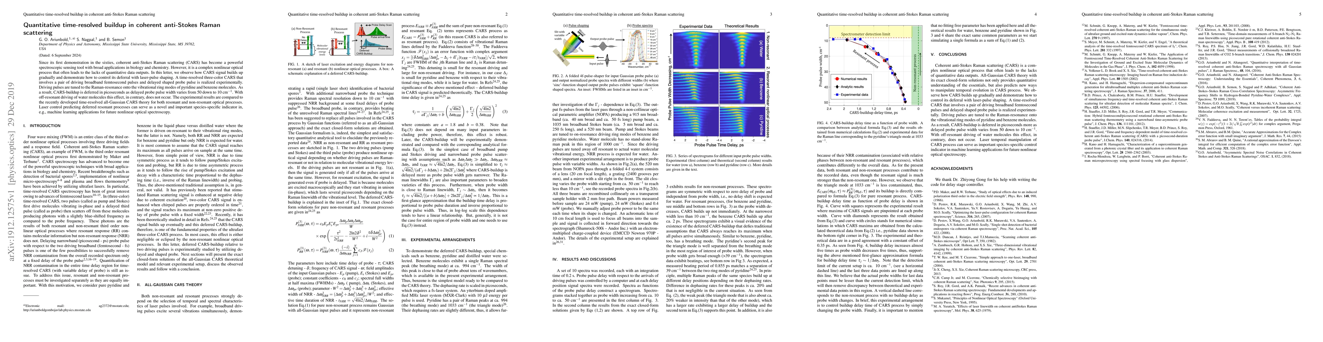 This paper demonstrates a time-resolved three-color coherent anti-Stokes Raman scattering (CARS) technique, showing how the CARS signal buildup can be controlled via laser-pulse shaping, with significant deferral observed in resonant processes involving pyridine and benzene molecules. This method could provide species-specific indicators for future nonlinear optical spectroscopy applications.