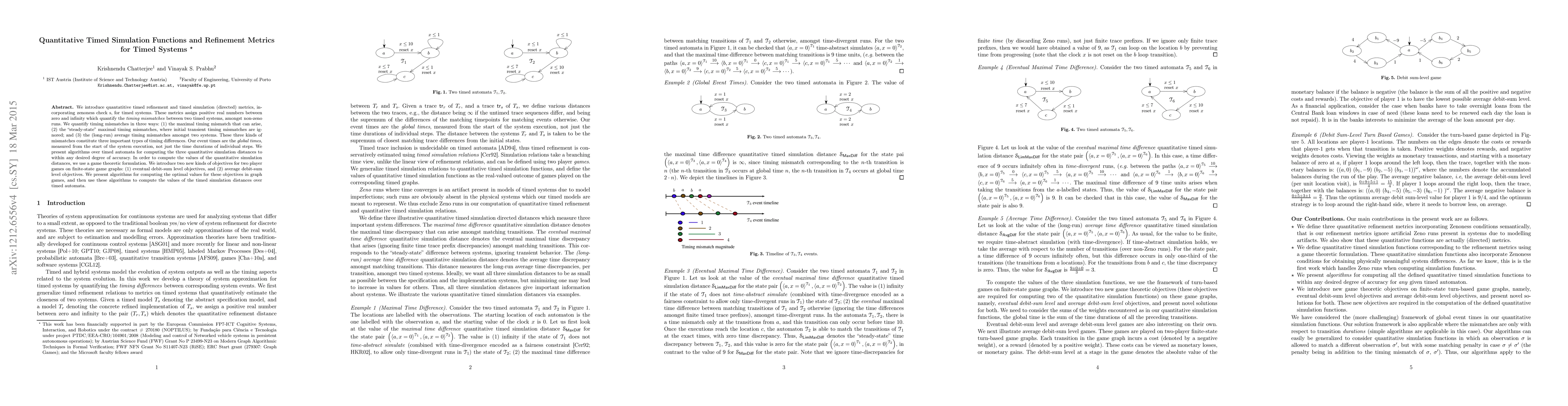 This paper introduces quantitative timed refinement and timed simulation metrics for timed systems, focusing on three types of timing mismatches: maximal, steady-state maximal, and long-run average mismatches. It employs timed automata and game theoretic formulations to compute these metrics with high accuracy.
