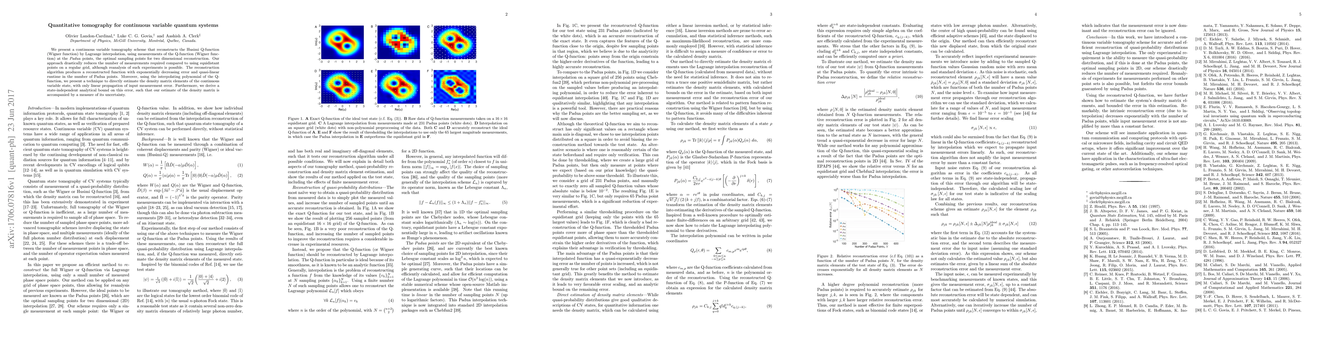 We present a continuous variable tomography scheme that reconstructs the Husimi Q-function (Wigner function) by Lagrange interpolation, using measurements of the Q-function (Wigner function) at the Padua points, the optimal sampling points for two dimensional reconstruction. Our approach drastically reduces the number of measurements required compared to using equidistant points on a regular grid, although reanalysis of such experiments is possible. The reconstruction algorithm produces a reconstructed function with exponentially decreasing error and quasi-linear runtime in the number of Padua points. Moreover, using the interpolating polynomial of the Q-function, we present a technique to directly estimate the density matrix elements of the continuous variable state, with only linear propagation of input measurement error. Furthermore, we derive a state-independent analytical bound on this error, such that our estimate of the density matrix is accompanied by a measure of its uncertainty.
