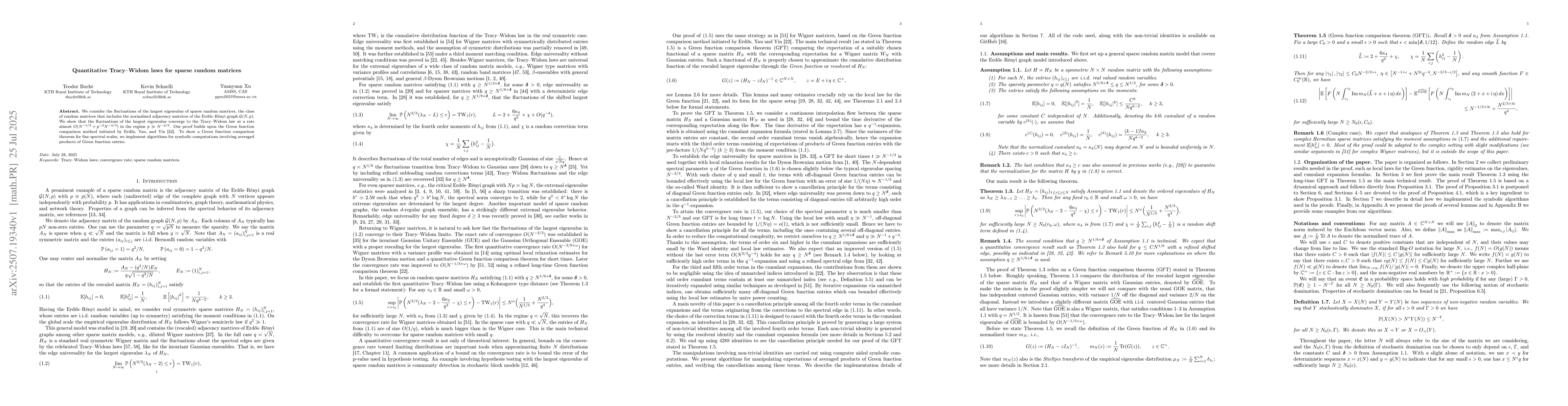We consider the fluctuations of the largest eigenvalue of sparse random matrices, the class of random matrices that includes the normalized adjacency matrices of the Erd\H{o}s-R\'enyi graph $G(N, p)$. We show that the fluctuations of the largest eigenvalue converge to the Tracy-Widom law at a rate almost $O(N^{-1/3 } + p^{-2} N^{-4/3})$ in the regime $p \gg N^{-2/3 }$. Our proof builds upon the Green function comparison method initiated by Erd\H{o}s, Yau, and Yin [22]. To show a Green function comparison theorem for fine spectral scales, we implement algorithms for symbolic computations involving averaged products of Green function entries.