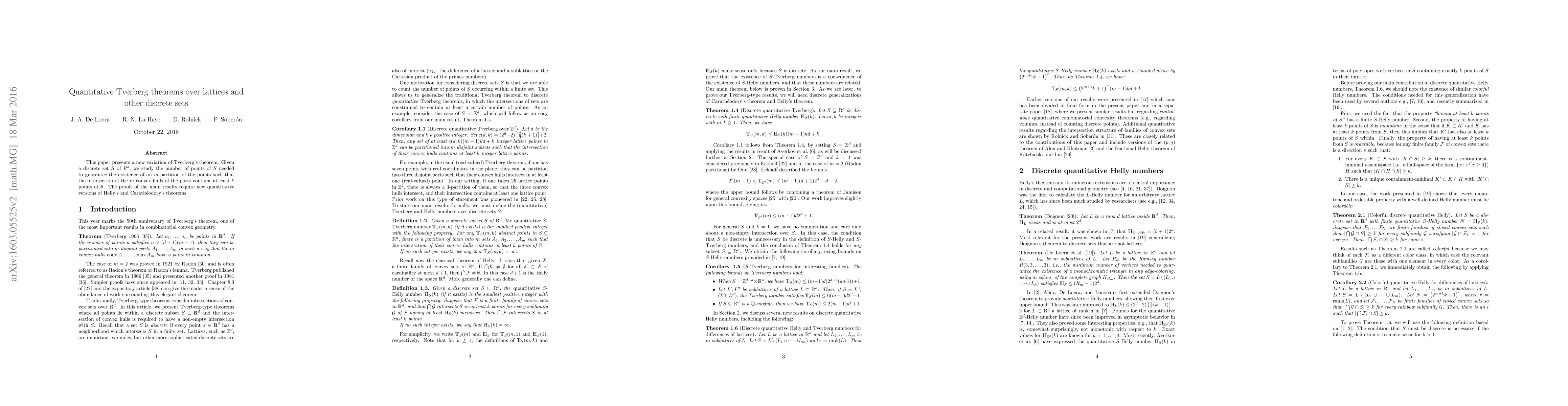 This paper presents a new variation of Tverberg's theorem. Given a discrete set $S$ of $R^d$, we study the number of points of $S$ needed to guarantee the existence of an $m$-partition of the points such that the intersection of the $m$ convex hulls of the parts contains at least $k$ points of $S$. The proofs of the main results require new quantitative versions of Helly's and Carath\'eodory's theorems.