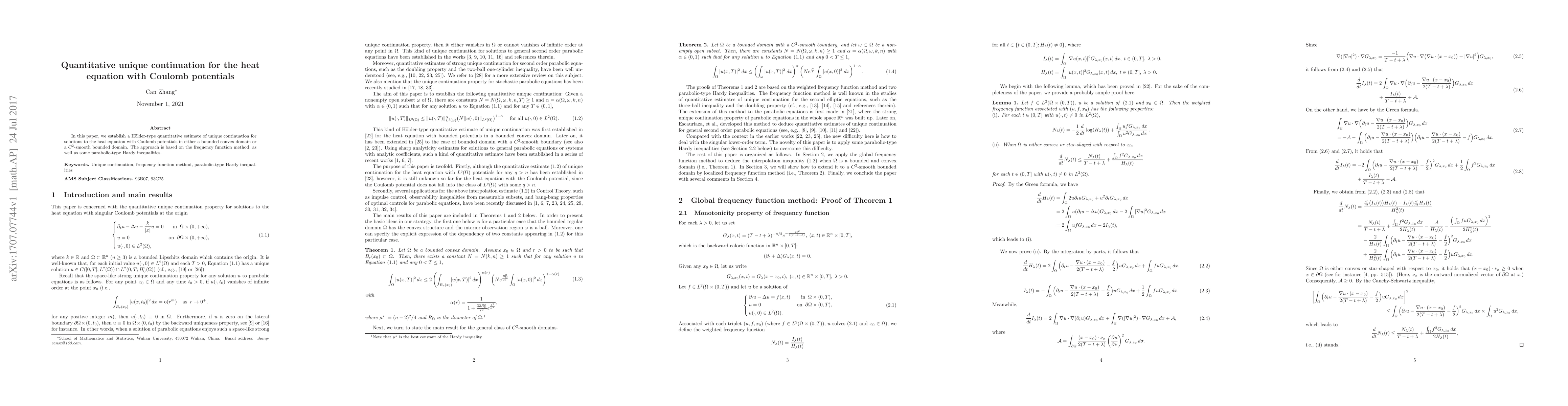 Summary: The paper presents a H\"older-type quantitative unique continuation estimate for solutions to the heat equation influenced by Coulomb potentials, validated for both bounded convex and $C^2$-smooth domains using the frequency function method and parabolic-type Hardy inequalities.