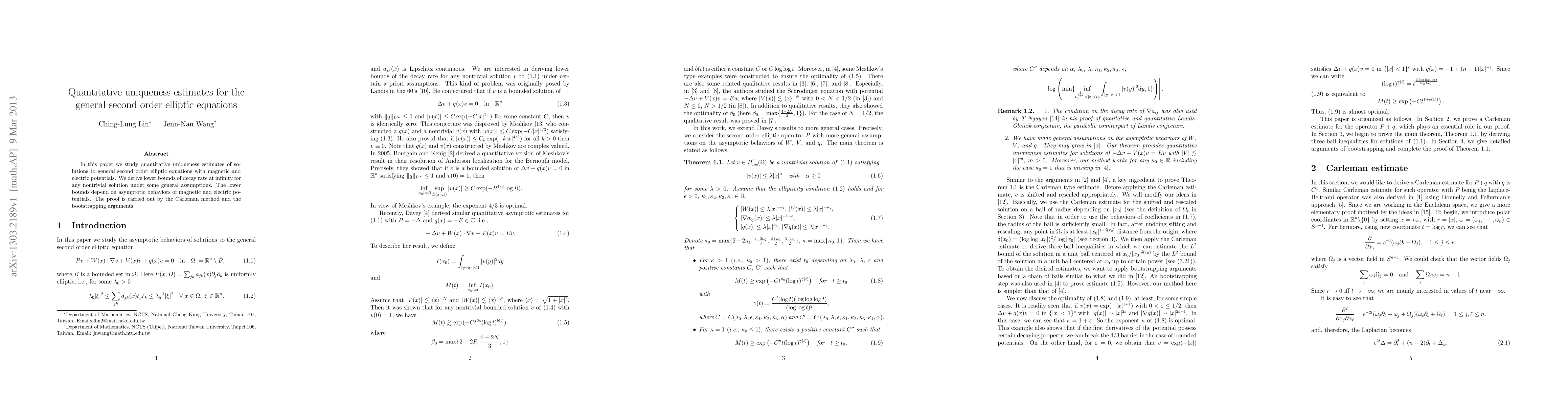 This paper derives quantitative uniqueness estimates for solutions to general second-order elliptic equations with magnetic and electric potentials, establishing lower bounds for decay rates at infinity based on the asymptotic behaviors of these potentials. The proof utilizes the Carleman method and bootstrapping arguments.