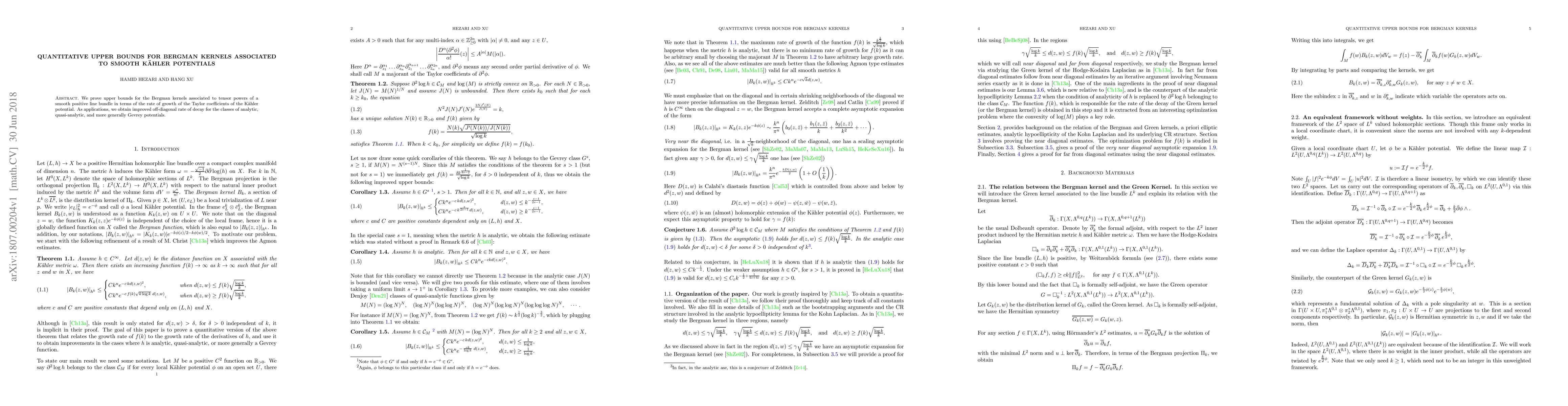 Researchers found upper bounds for Bergman kernels associated with smooth K"ahler potentials in terms of the growth rate of Taylor coefficients, improving off-diagonal decay rates for certain types of potentials.
