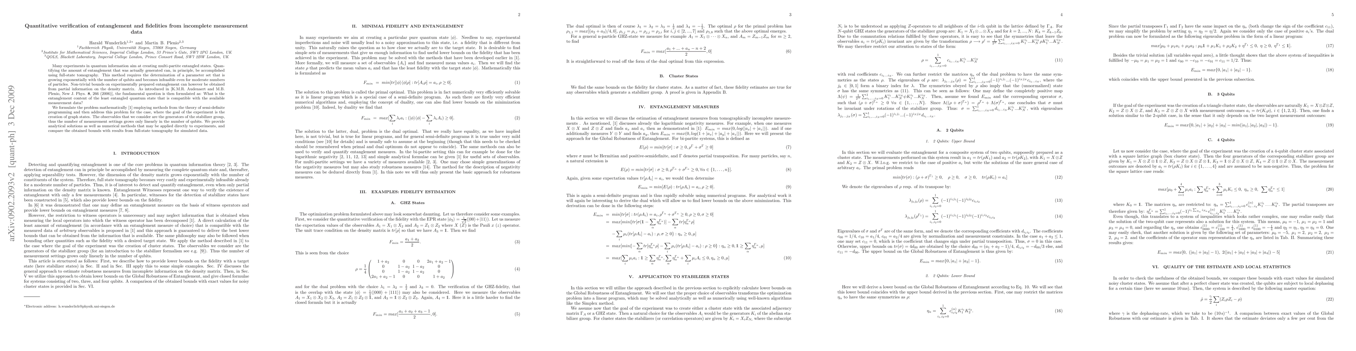 Many experiments in quantum information aim at creating multi-partite entangled states. Quantifying the amount of entanglement that was actually generated can, in principle, be accomplished using full-state tomography. This method requires the determination of a parameter set that is growing exponentially with the number of qubits and becomes infeasible even for moderate numbers of particles. Non-trivial bounds on experimentally prepared entanglement can however be obtained from partial information on the density matrix. The fundamental question that needs to be addressed in this context is then formulated as: What is the entanglement content of the least entangled quantum state that is compatible with the available measurement data? We formulate the problem mathematically employing methods from the theory of semi-definite programming and then address this problem for the case, where the goal of the experiment is the creation of graph states. The observables that we consider are the generators of the stabilizer group, thus the number of measurement settings grows only linearly in the number of qubits. We provide analytical solutions as well as numerical methods that may be applied directly to experiments, and compare the obtained bounds with results from full-state tomography for simulated data.
