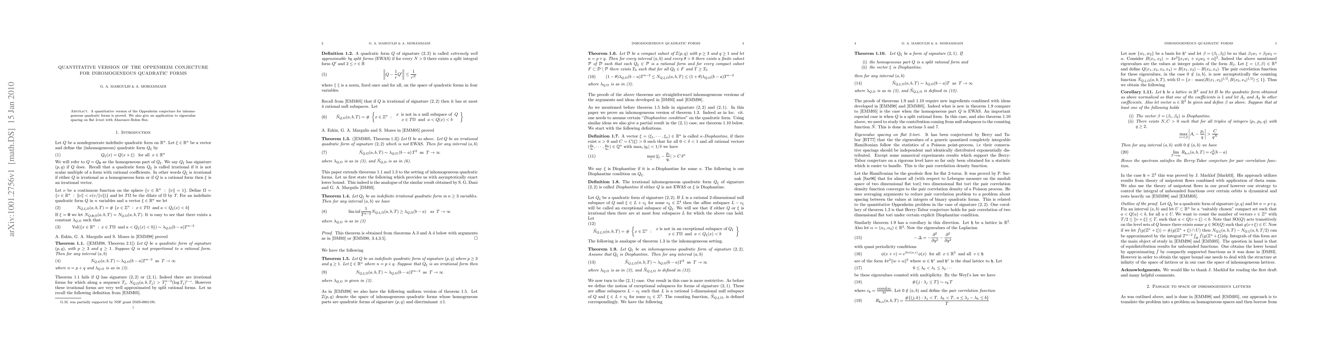 Summary: This paper proves a quantitative version of the Oppenheim conjecture for inhomogeneous quadratic forms and applies the result to study eigenvalue spacing on flat 2-tori with Aharonov-Bohm flux. The findings provide new insights into the distribution of eigenvalues in quantum systems.