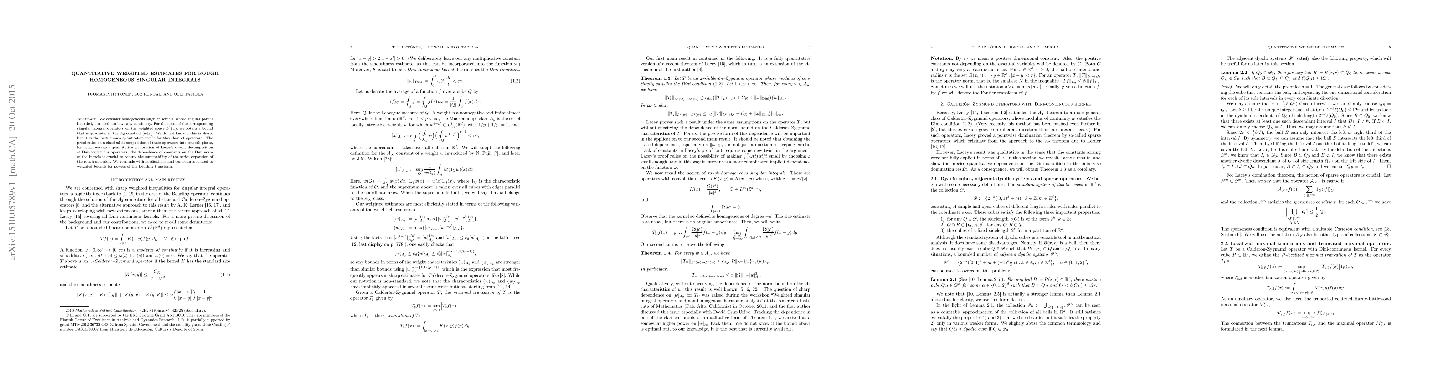 We consider homogeneous singular kernels, whose angular part is bounded, but need not have any continuity. For the norm of the corresponding singular integral operators on the weighted space $L^2(w)$, we obtain a bound that is quadratic in the $A_2$ constant $[w]_{A_2}$. We do not know if this is sharp, but it is the best known quantitative result for this class of operators. The proof relies on a classical decomposition of these operators into smooth pieces, for which we use a quantitative elaboration of Lacey's dyadic decomposition of Dini-continuous operators: the dependence of constants on the Dini norm of the kernels is crucial to control the summability of the series expansion of the rough operator. We conclude with applications and conjectures related to weighted bounds for powers of the Beurling transform.