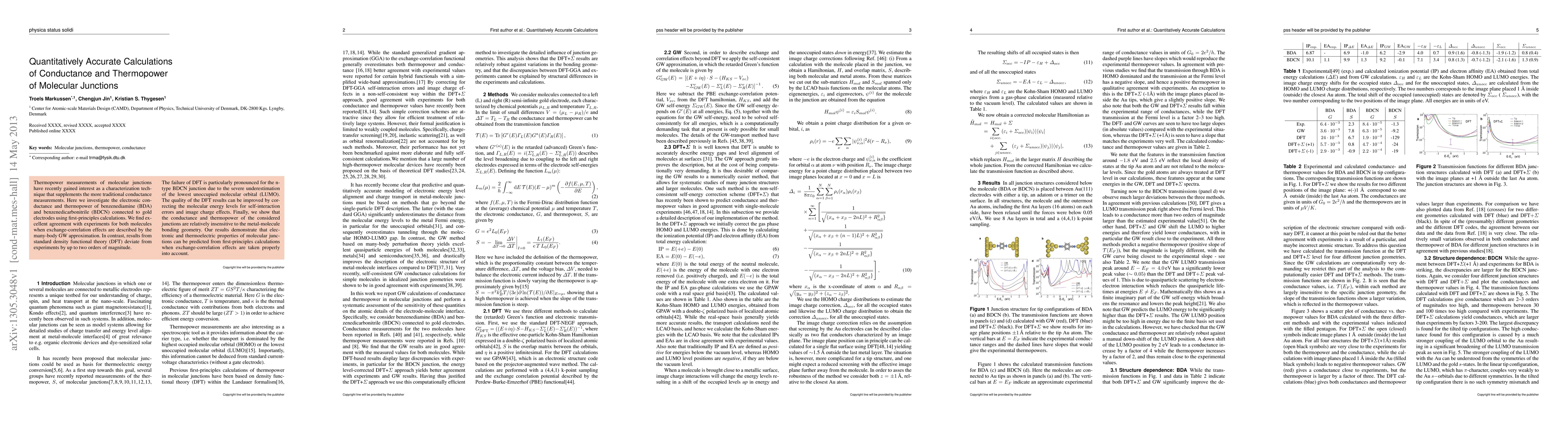 The paper presents a detailed comparison of GW approximation and DFT+Σ method in calculating conductance and thermopower of molecular junctions, showcasing the superiority of GW for accurate predictions.