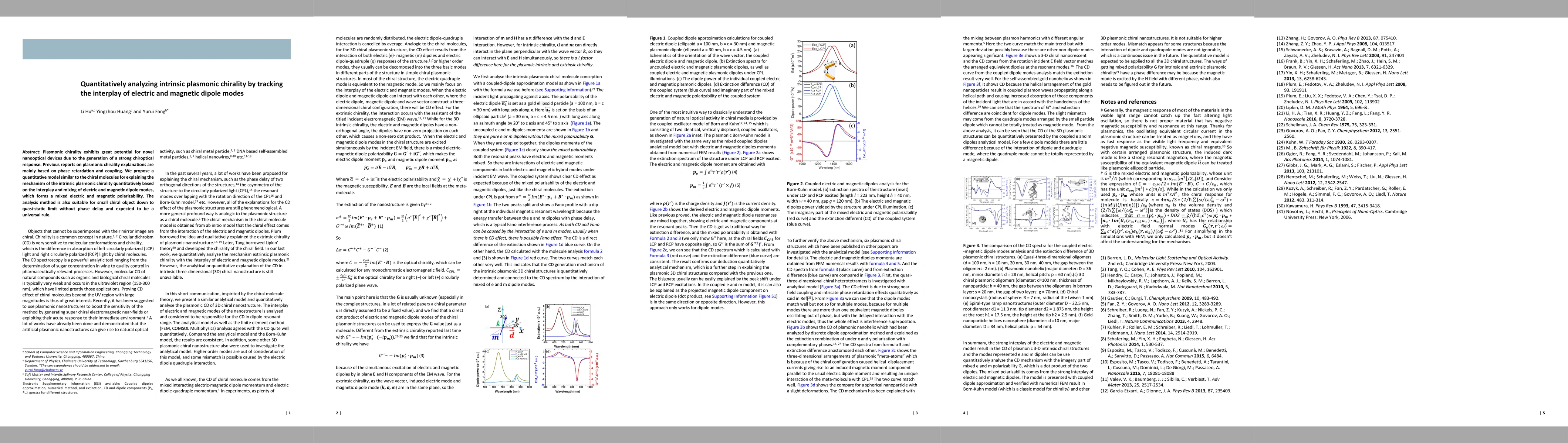 This paper proposes a quantitative model to explain intrinsic plasmonic chirality through the interplay of electric and magnetic dipole modes, forming a mixed polarizability. The method is applicable to small chiral objects and aims to provide a universal rule for analyzing chiroptical responses in nanooptical devices.